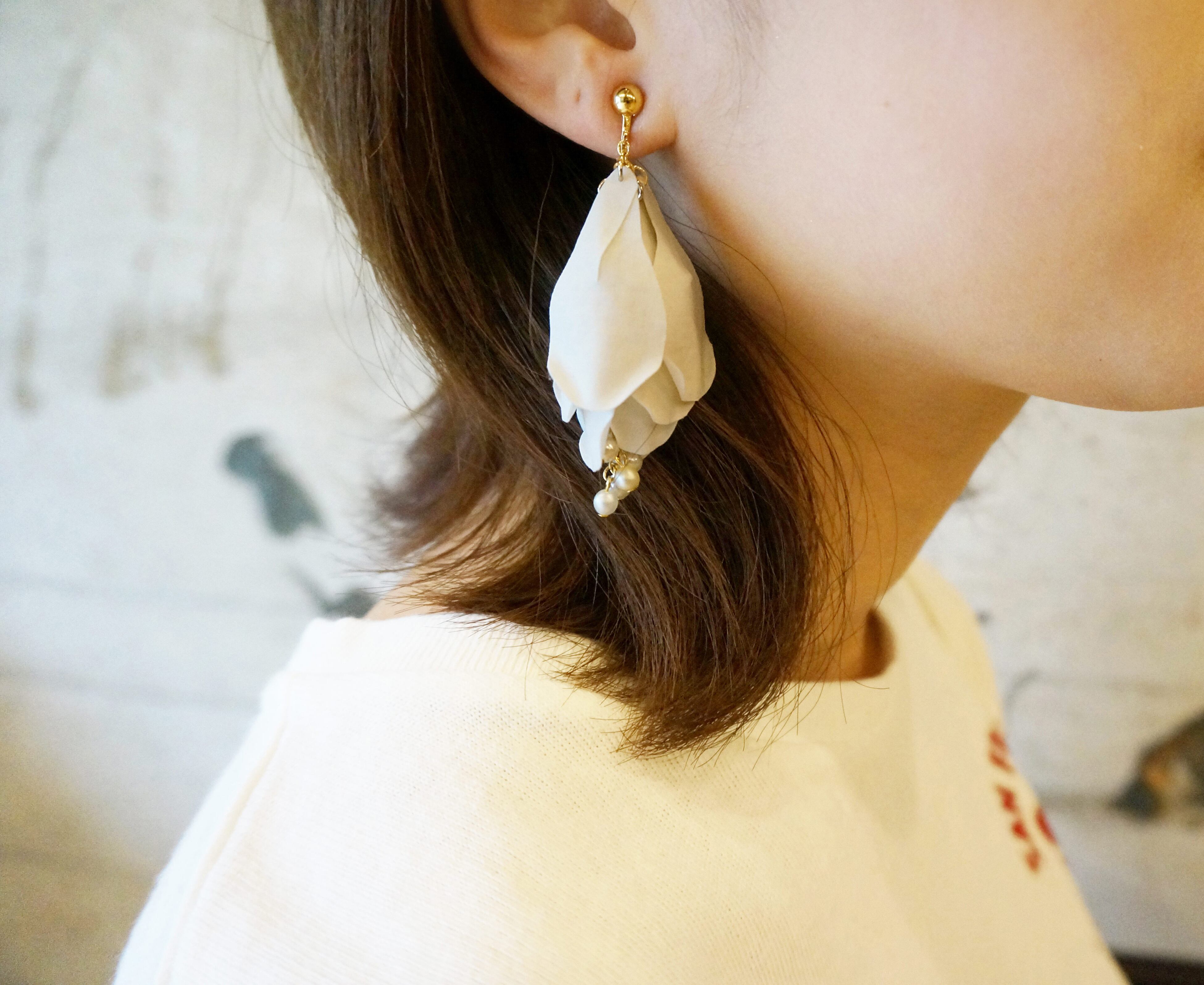 小さな、さまざまなホワイトカラーのパールビーズもふんだんに使って、