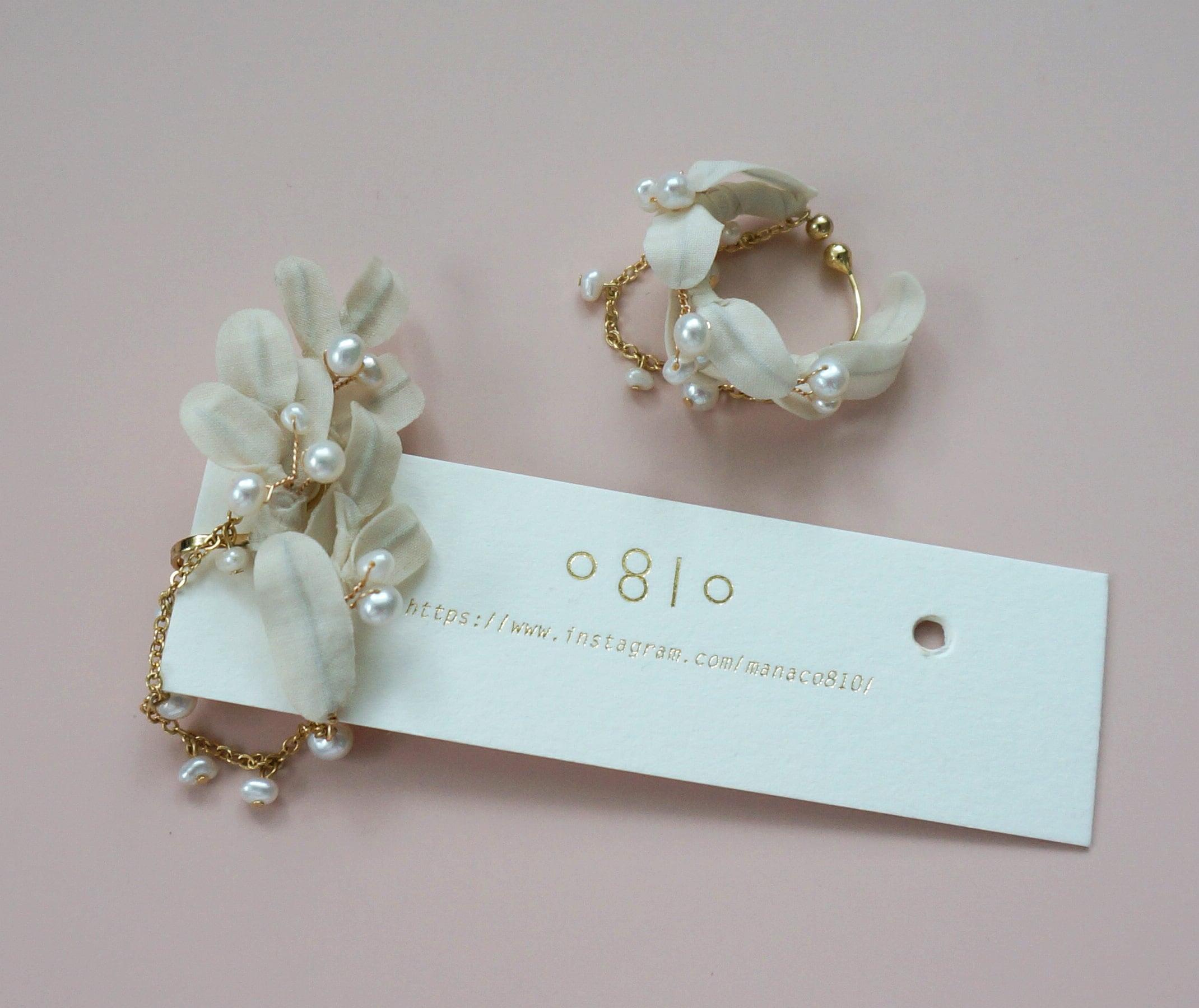 淡水パールを使ったオリーブの葉をモチーフにしたイヤーカフセット