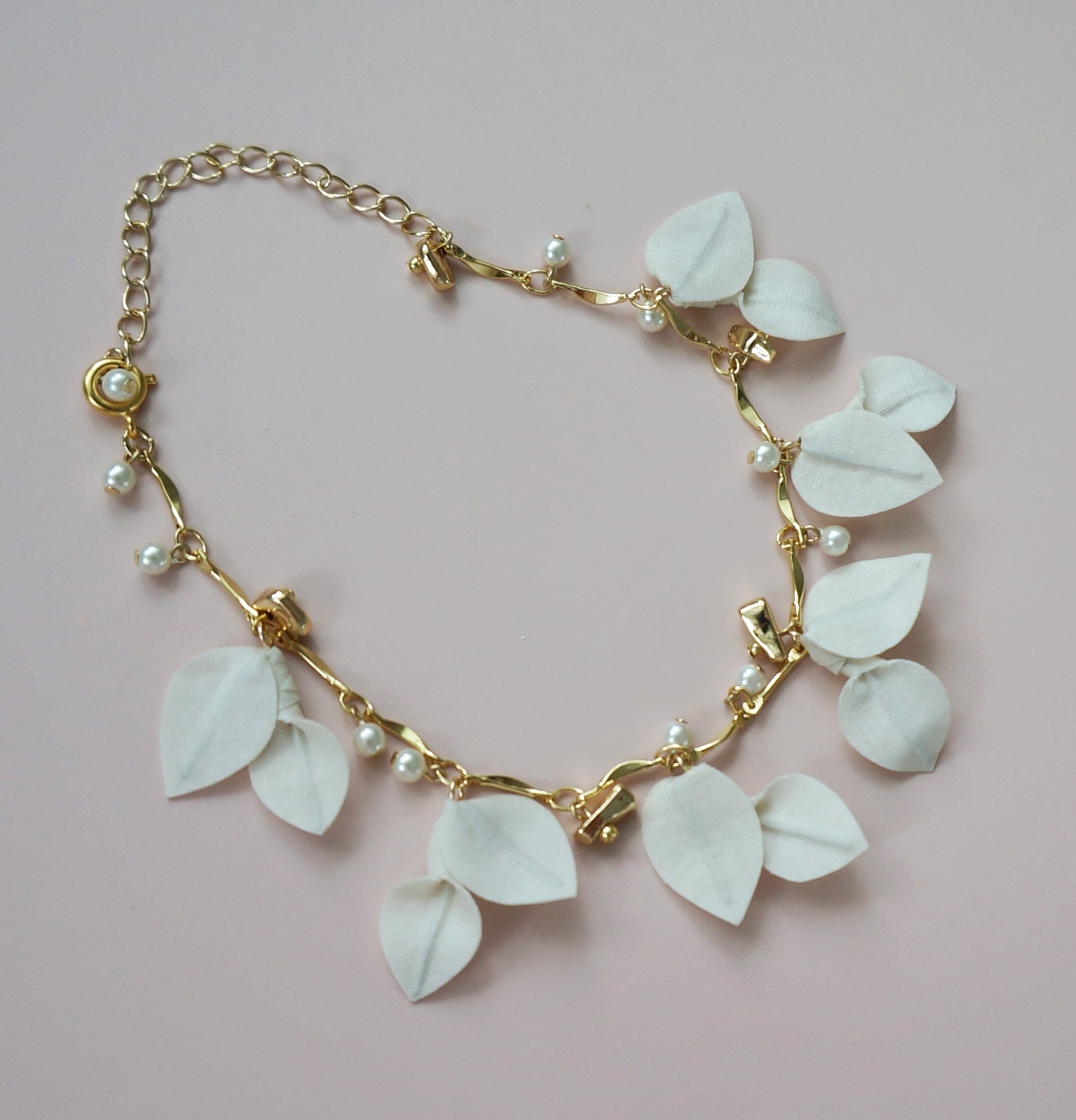 葉っぱのモチーフとウエーブチェーンのブレスレット