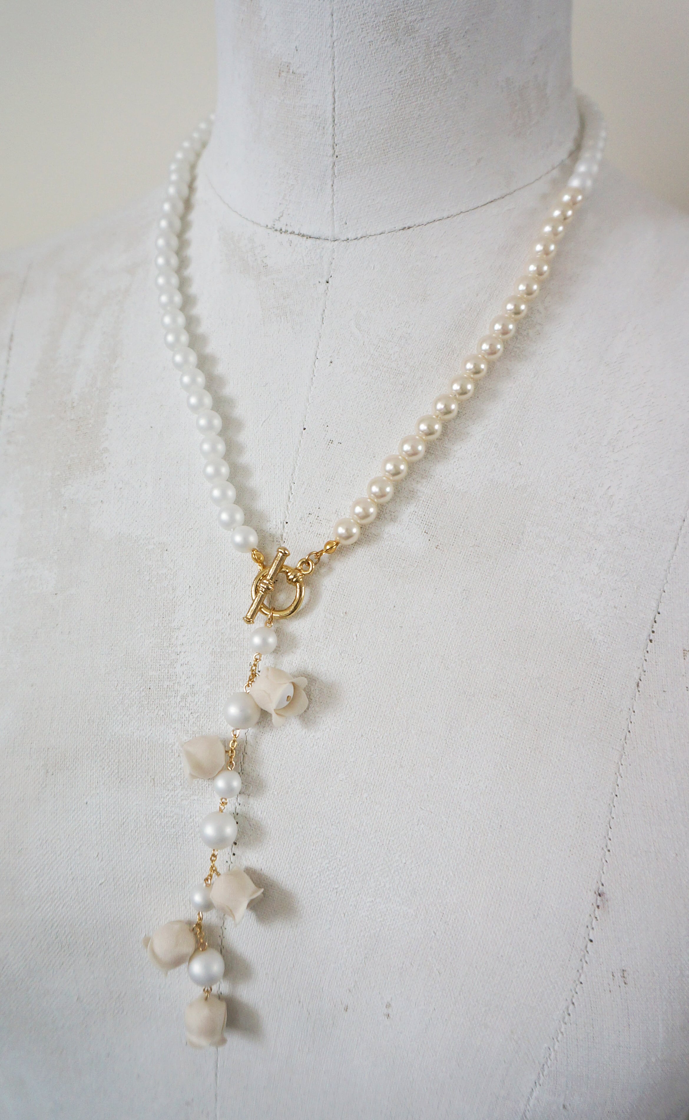 すずらんモチーフとパールのネックレス