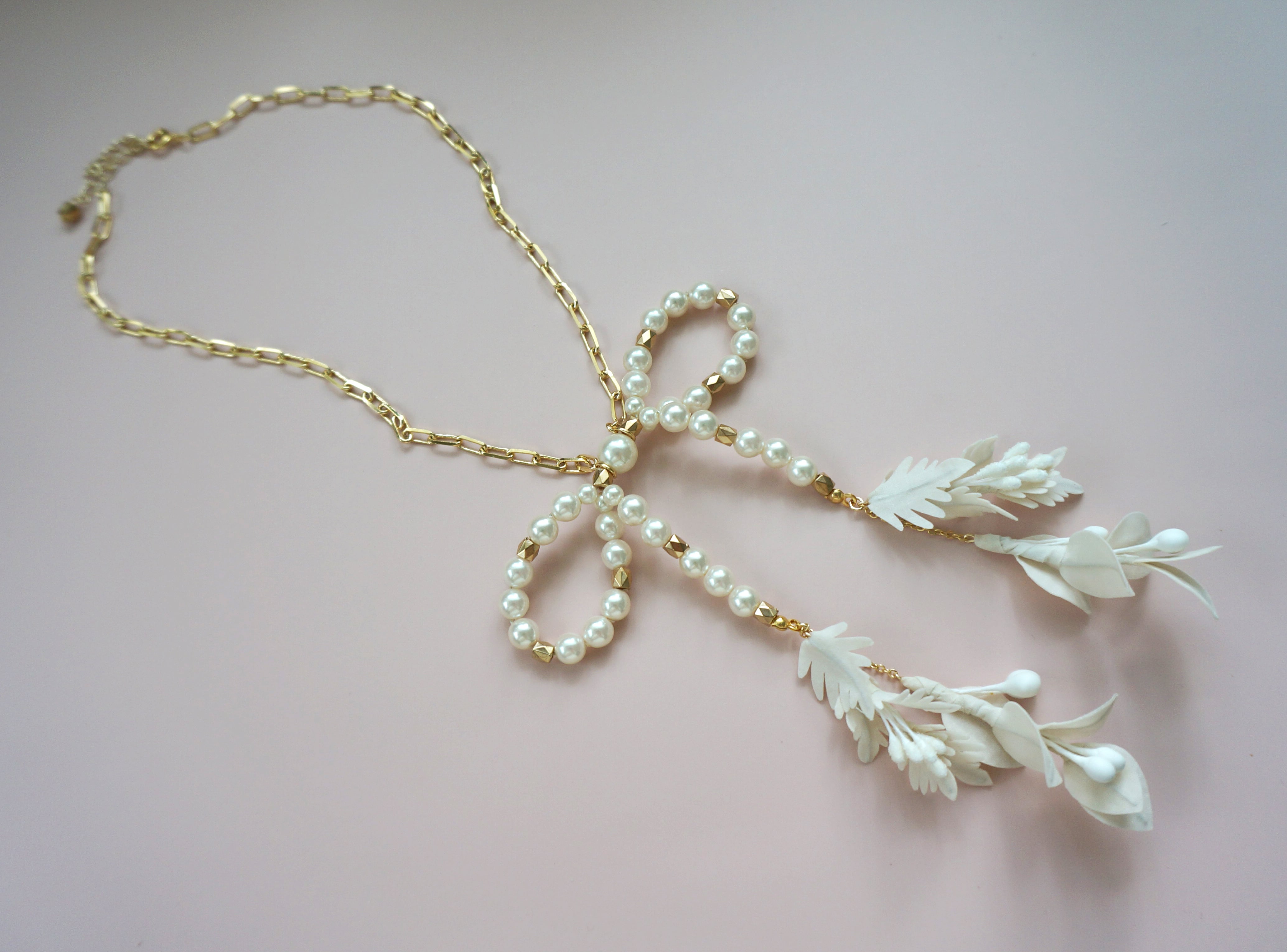リボンモチーフにはっぱモチーフを組み合わせたネックレス