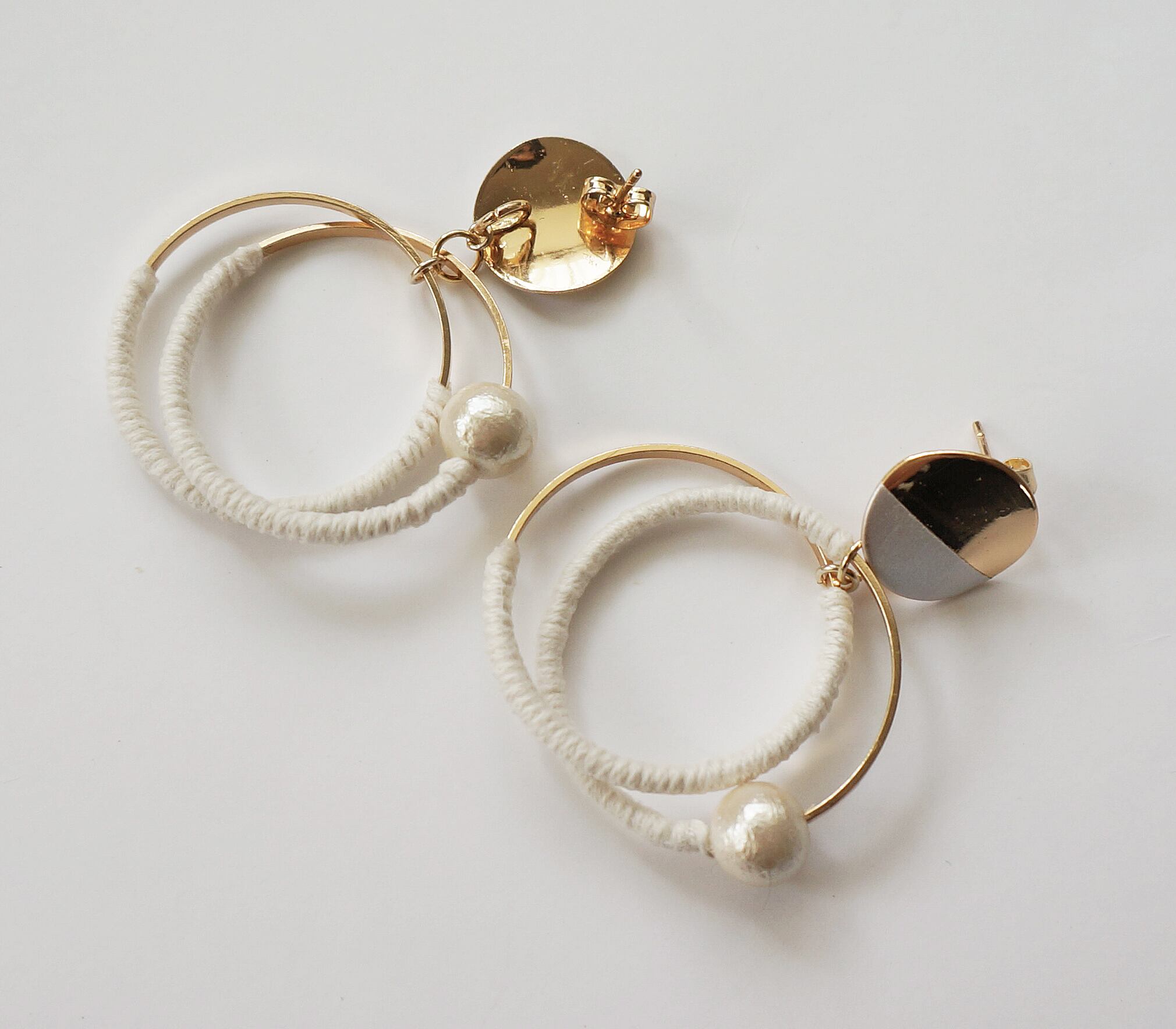 オーガニックコットンの糸を巻いたフープを組合わせたデザイン。