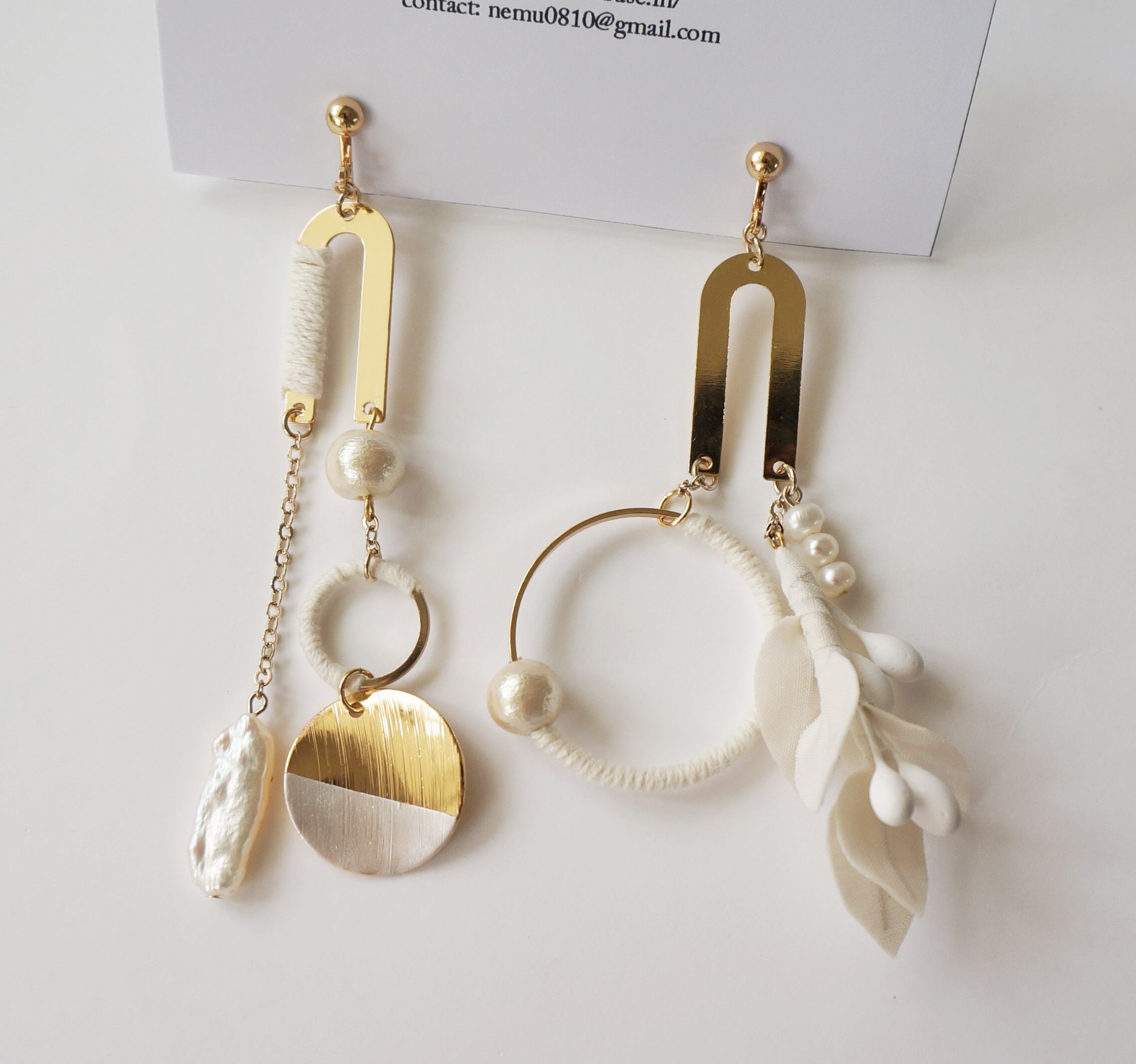 パールのペイントやオーガニックコットンの糸を巻きつけたゴールドパーツを