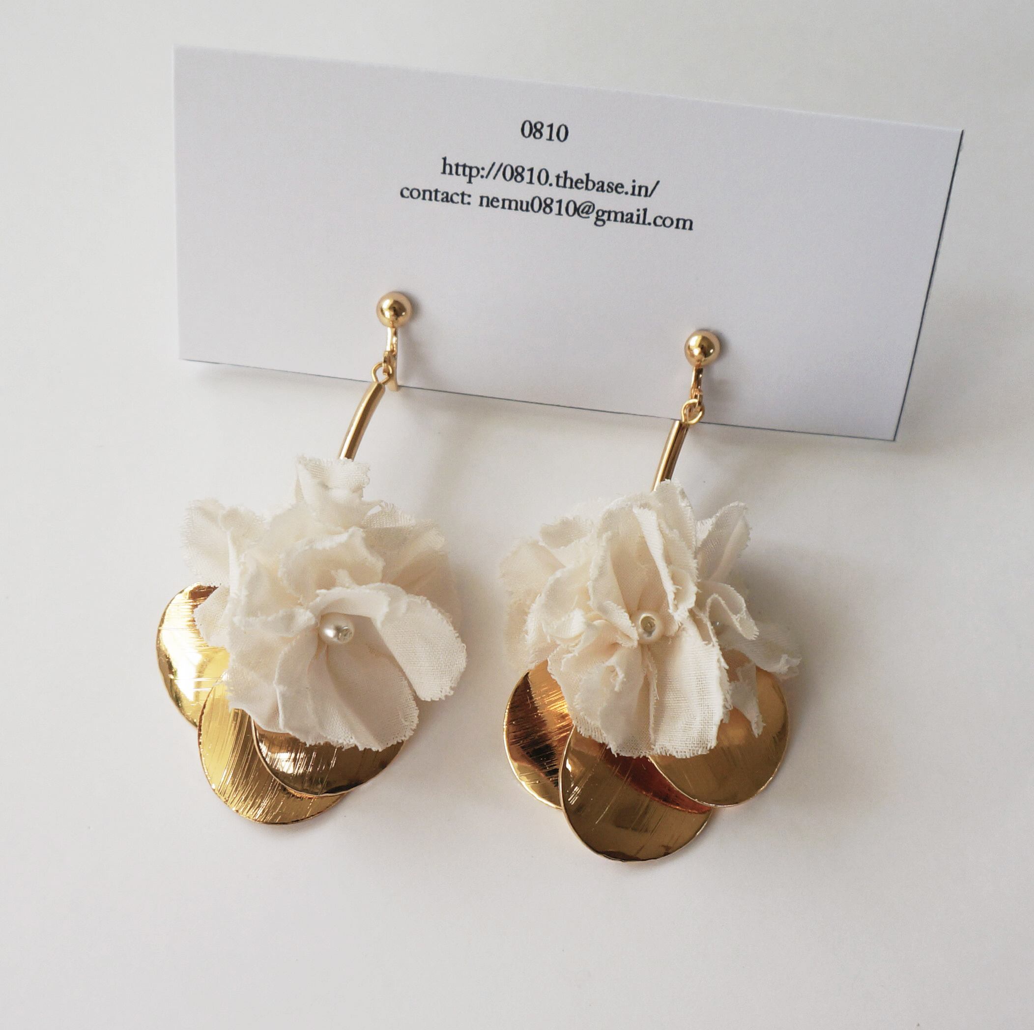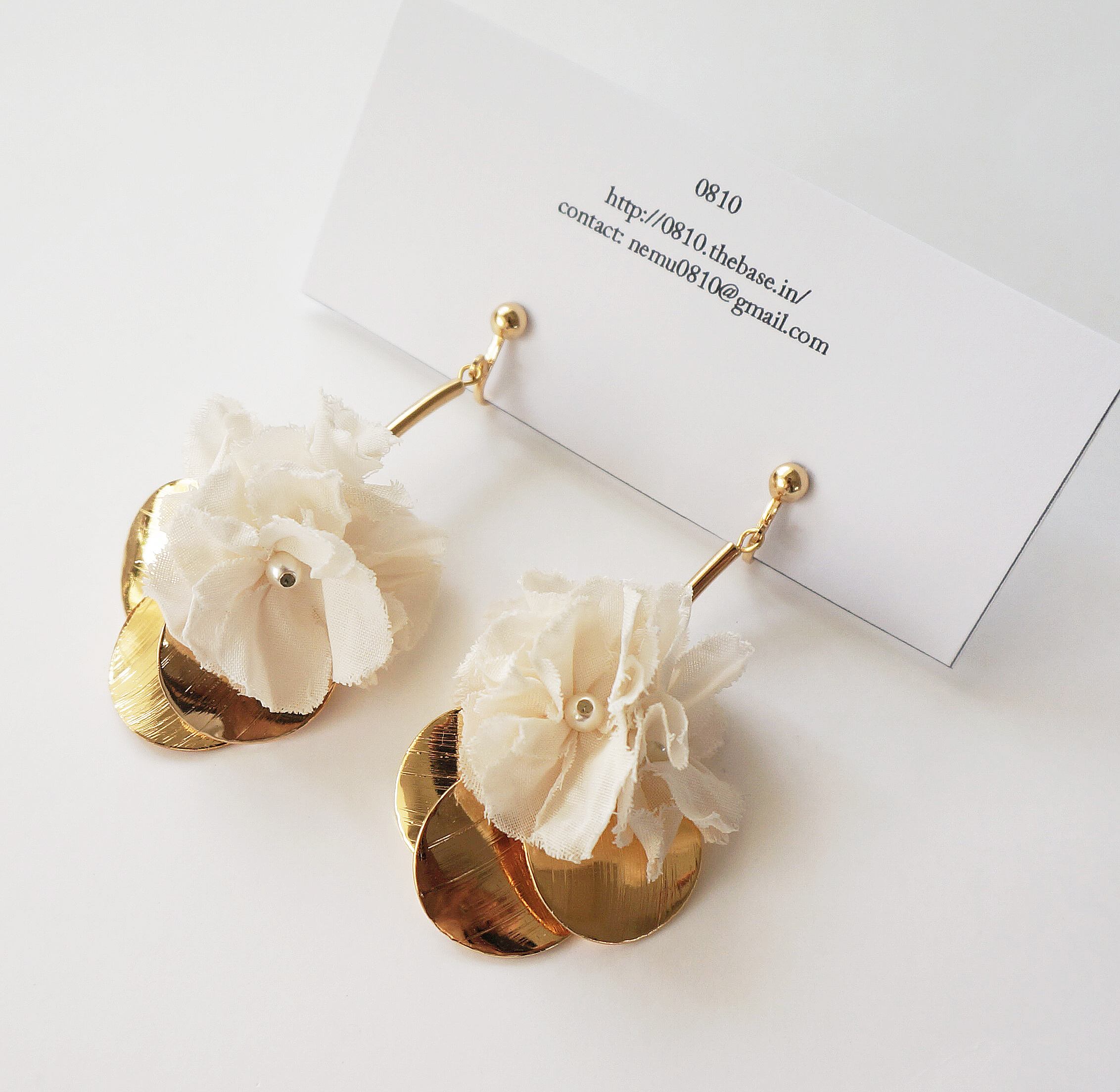 丸いゴールドパーツをじゃらっと組み合わせたイヤリング。