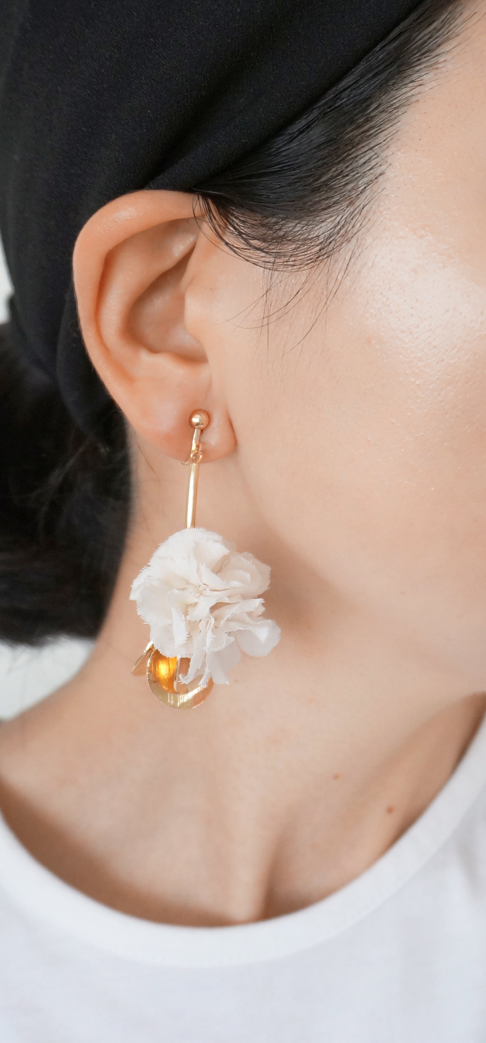 紅茶で染めたコットン生地で作った小花をくしゅっと集めて、