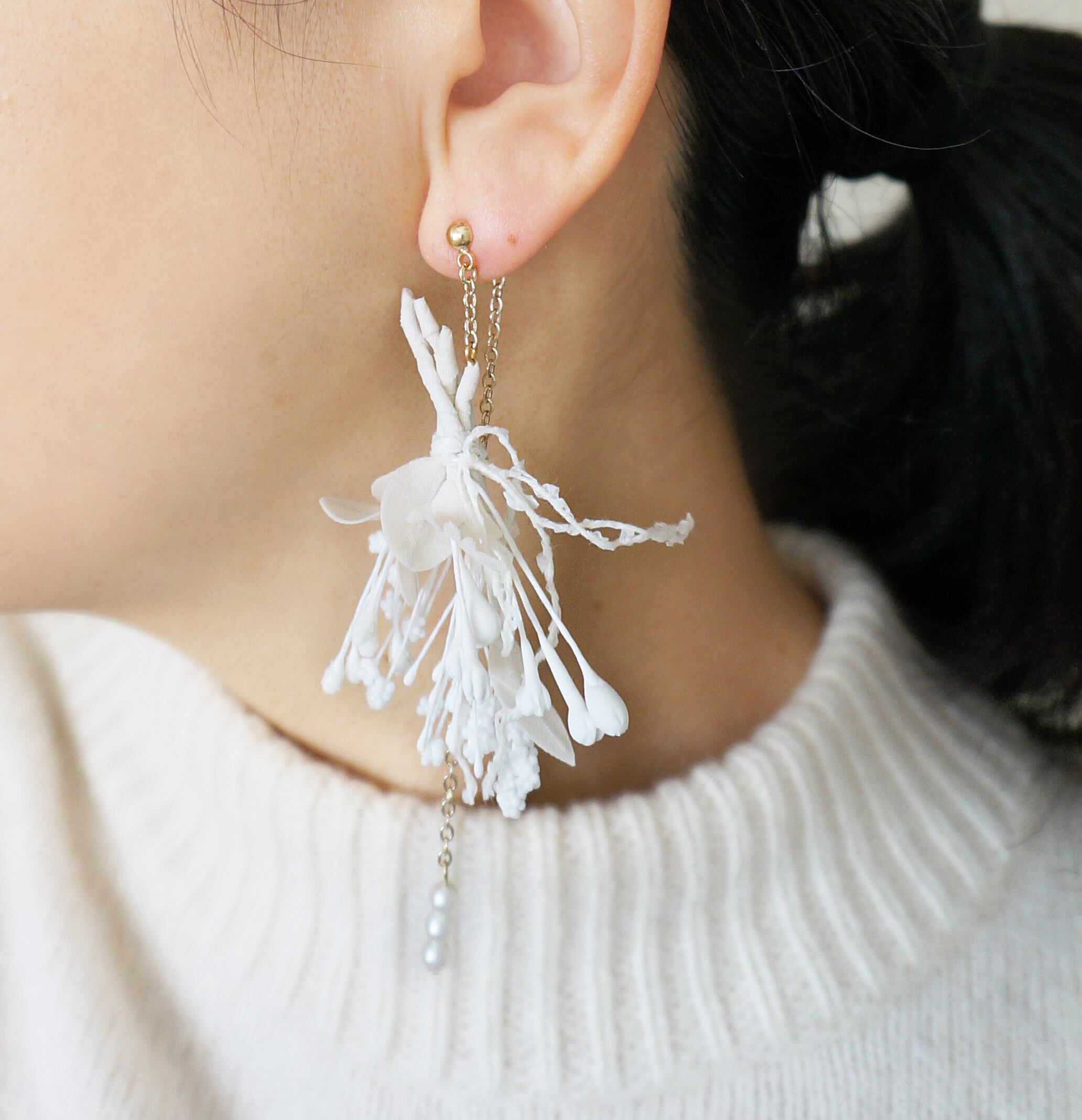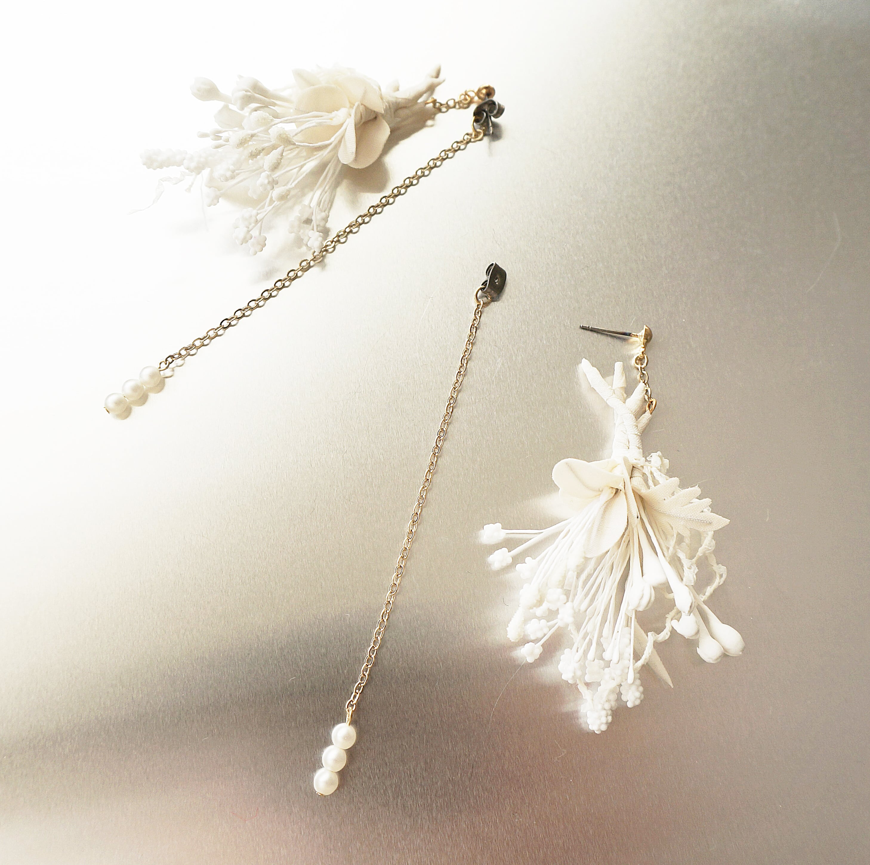 キャッチには長めのチェーンと小さなパールビーズを付けて、
