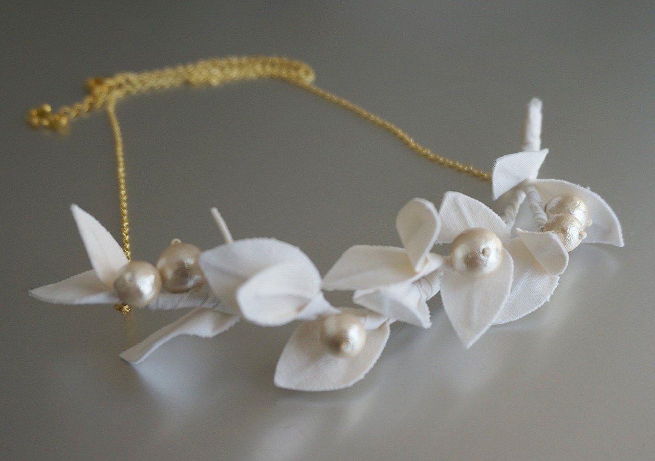 コットンパールを合せているので、華やかさもあり、シンプルなニットやワンピースにプラスするとコーディネートのアクセントに使えます。