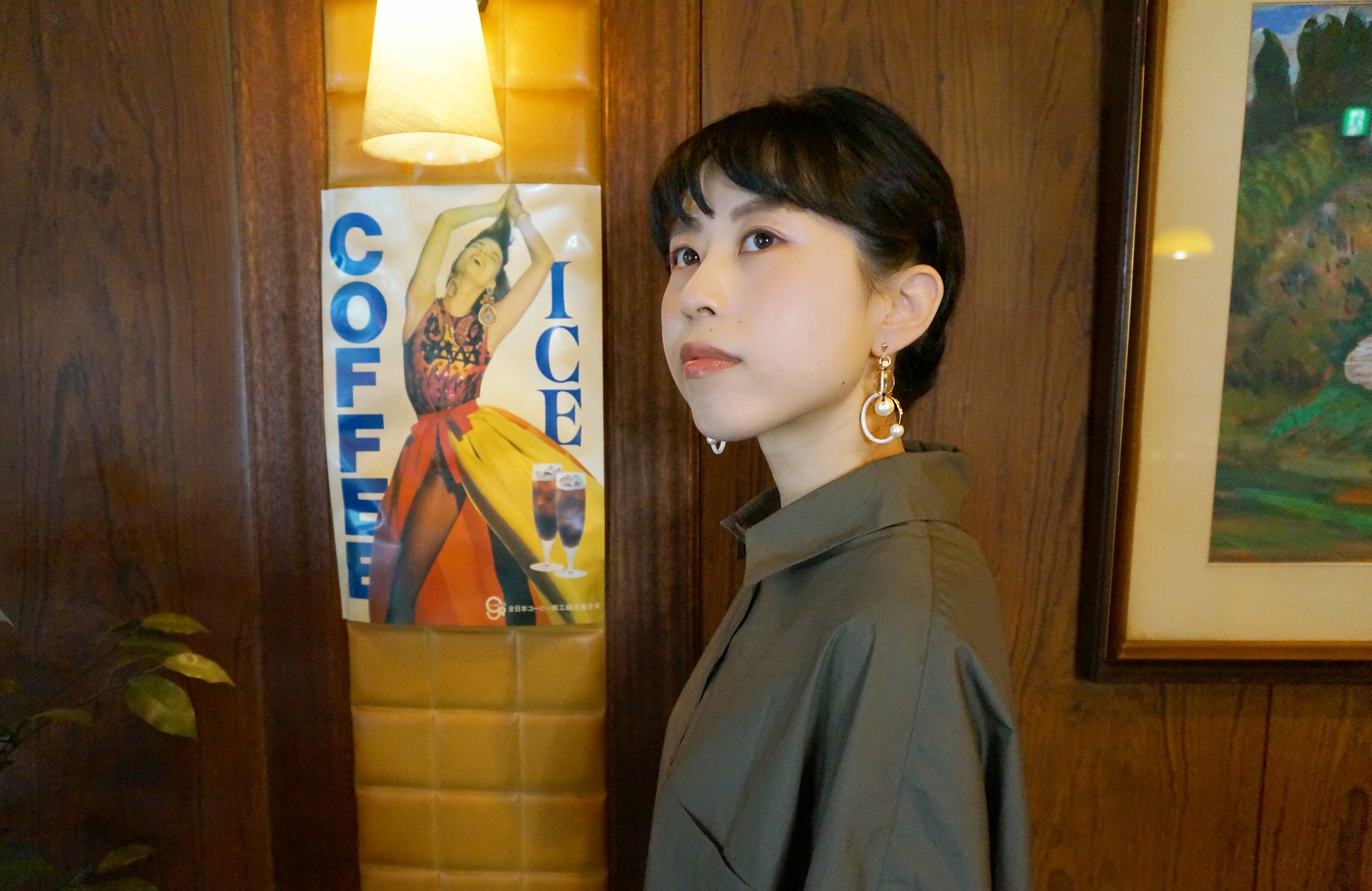 様々な大きさのコットンパールを組み合わせたイヤリングです。