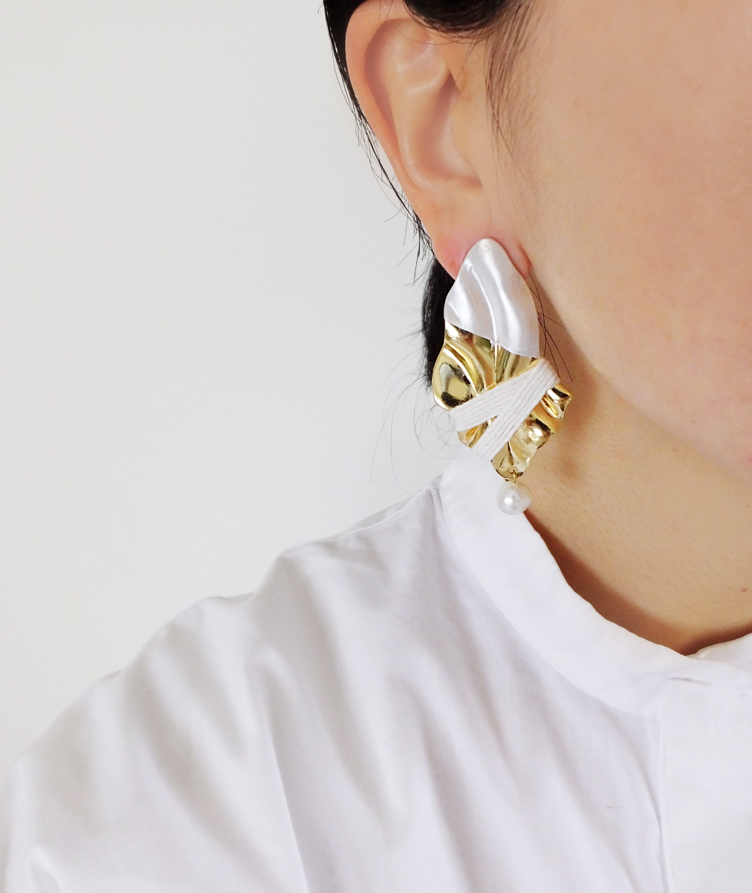 大きめのバロックタイプの淡水パールもデザインのポイント。