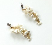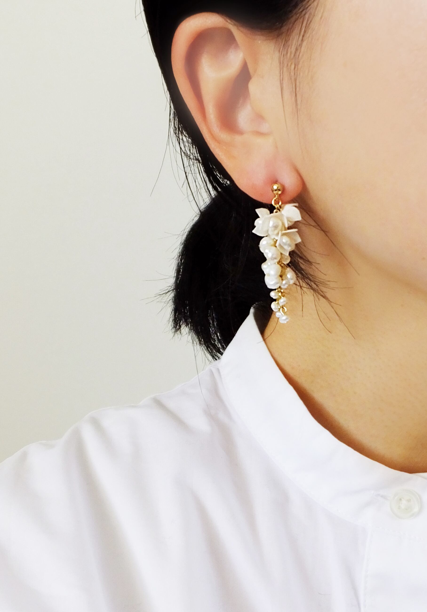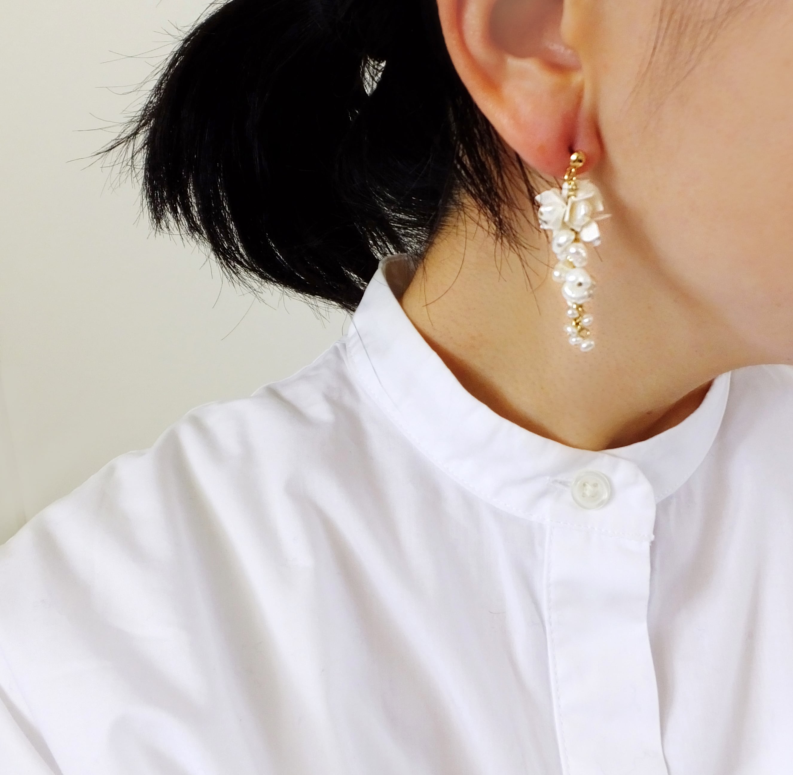 紅茶染めしたコットン生地で作ったお花をふんだんに使ったピアスです。
