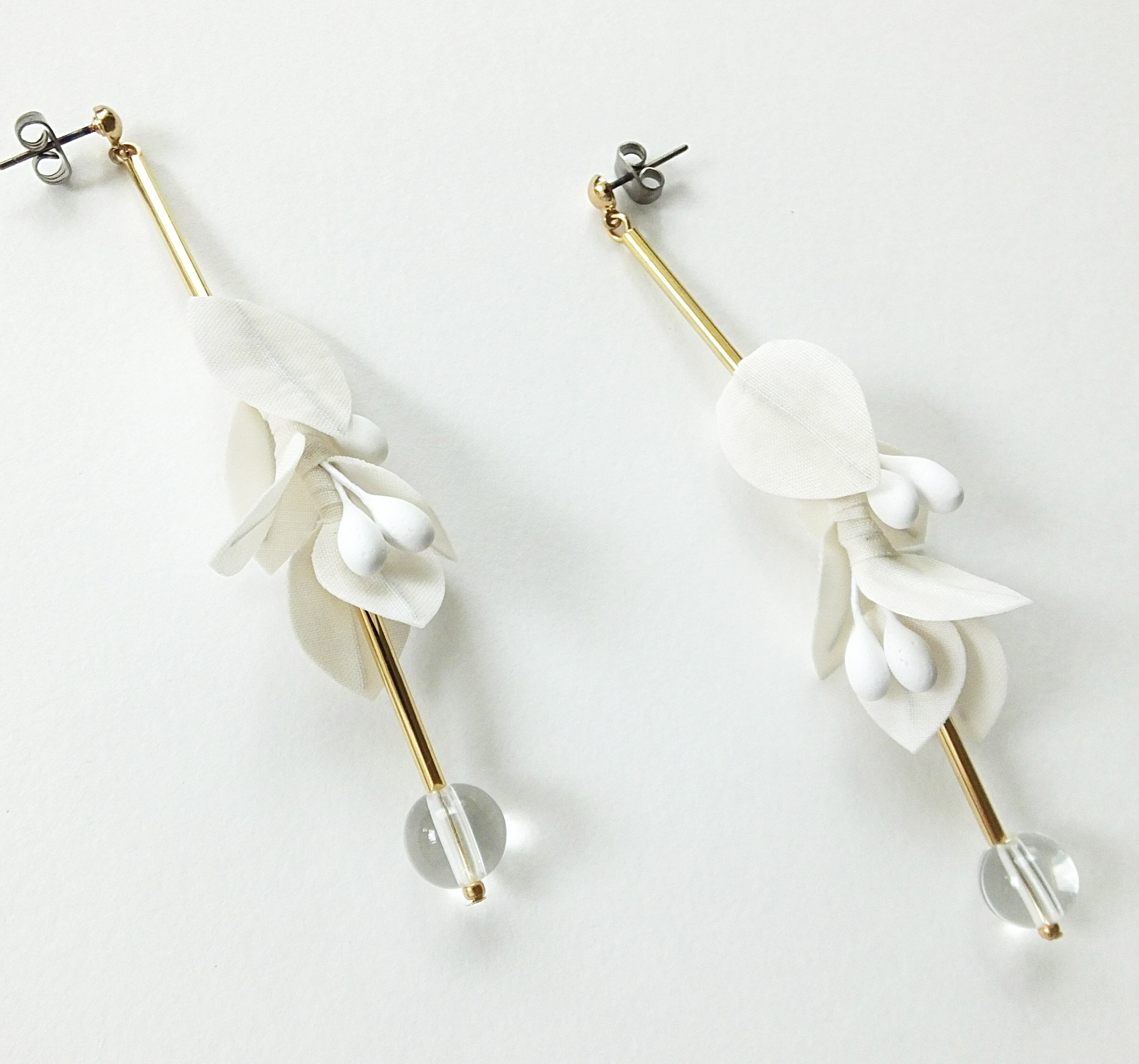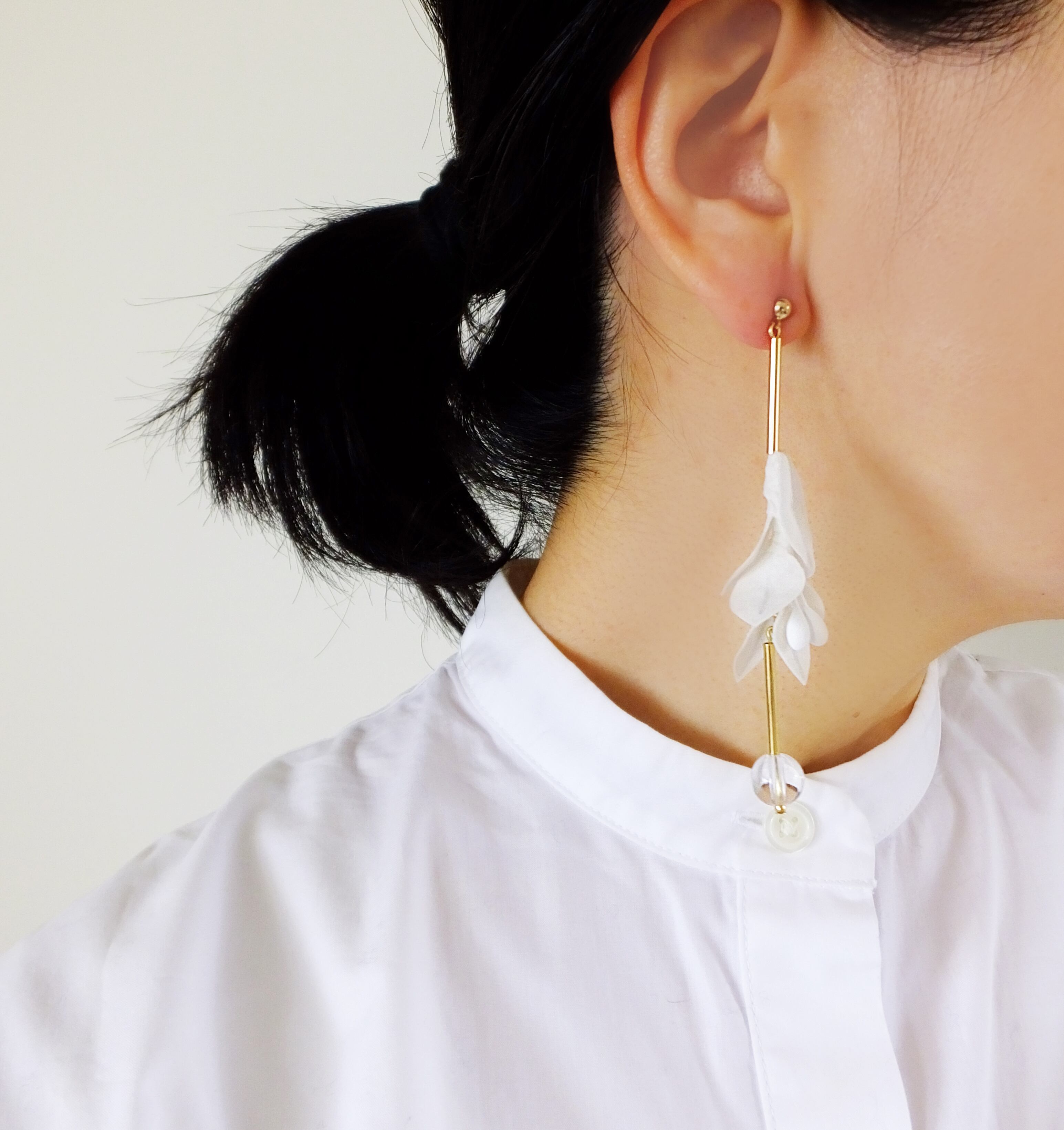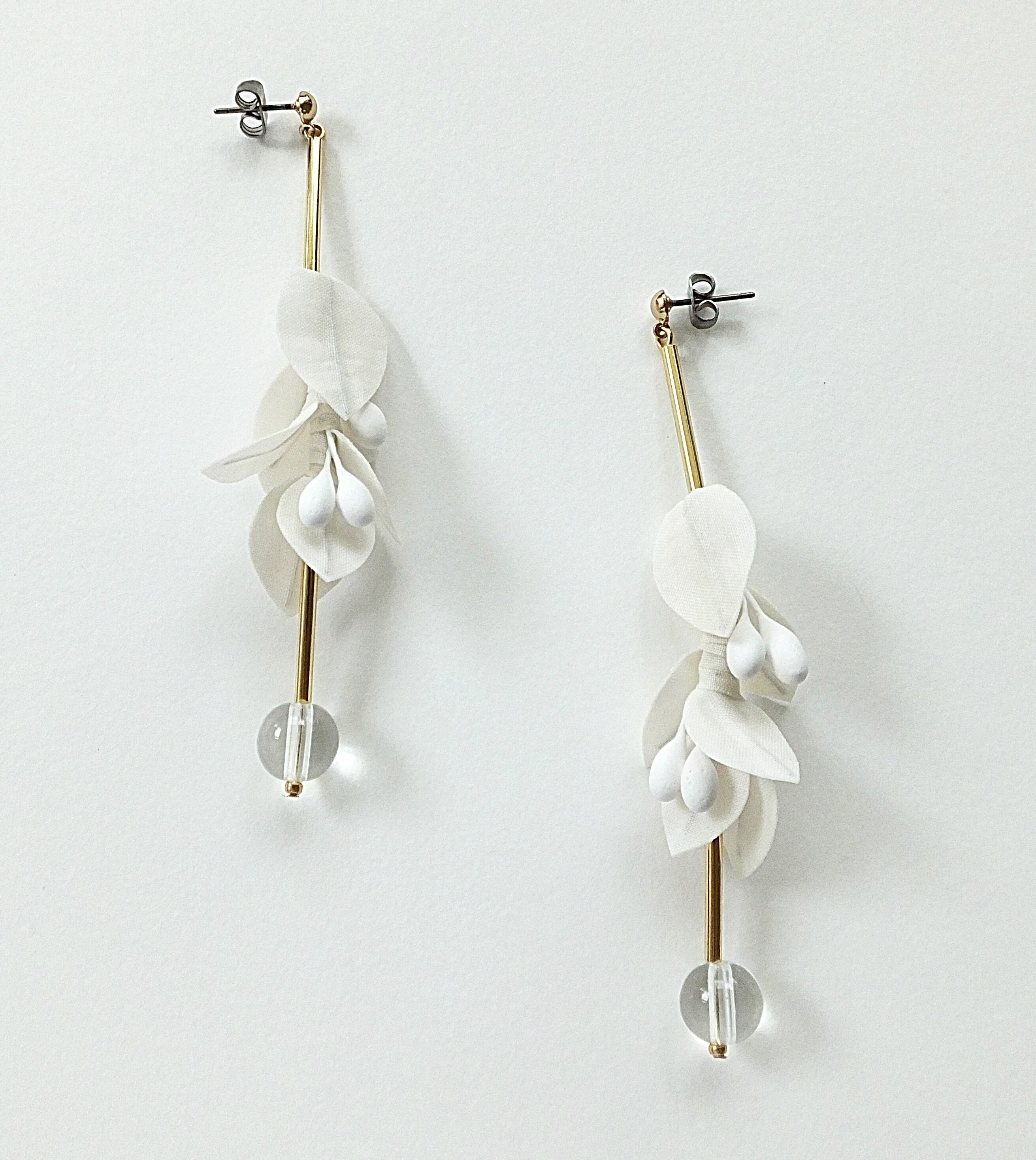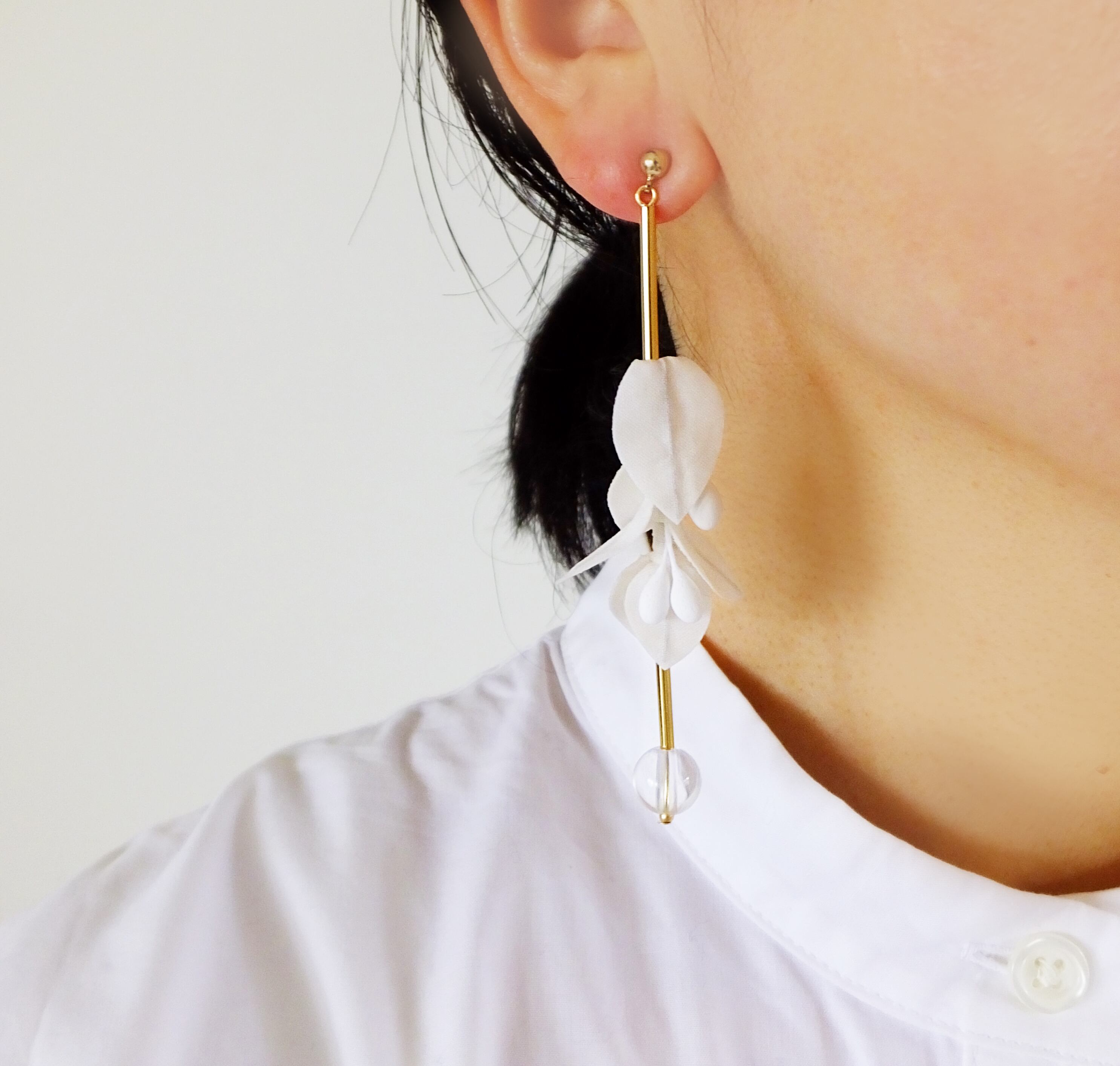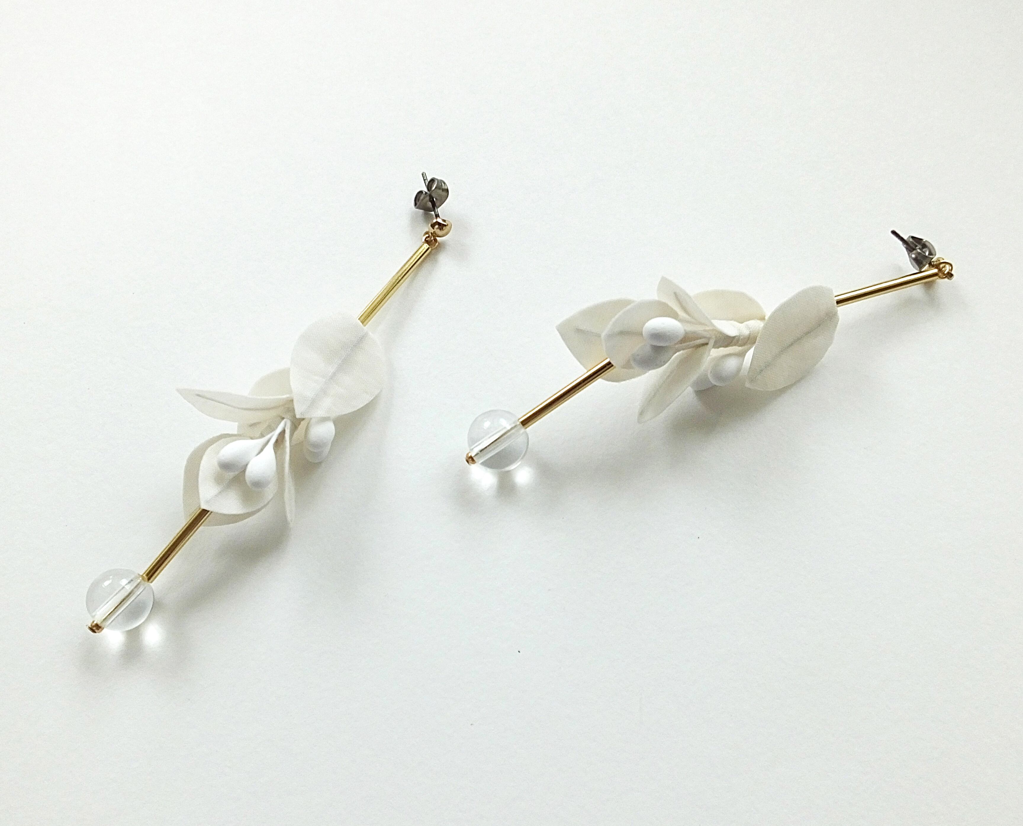 リーフモチーフにアクリルビーズとメタルパーツを組み合わせたシャープな印象のピアス