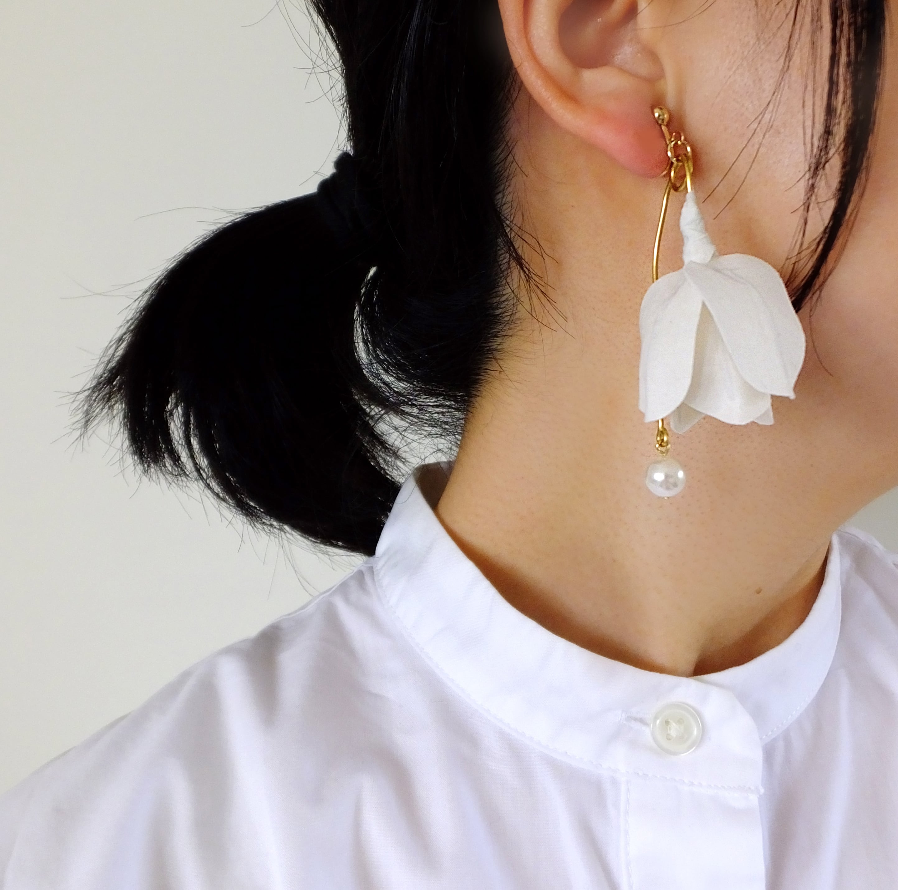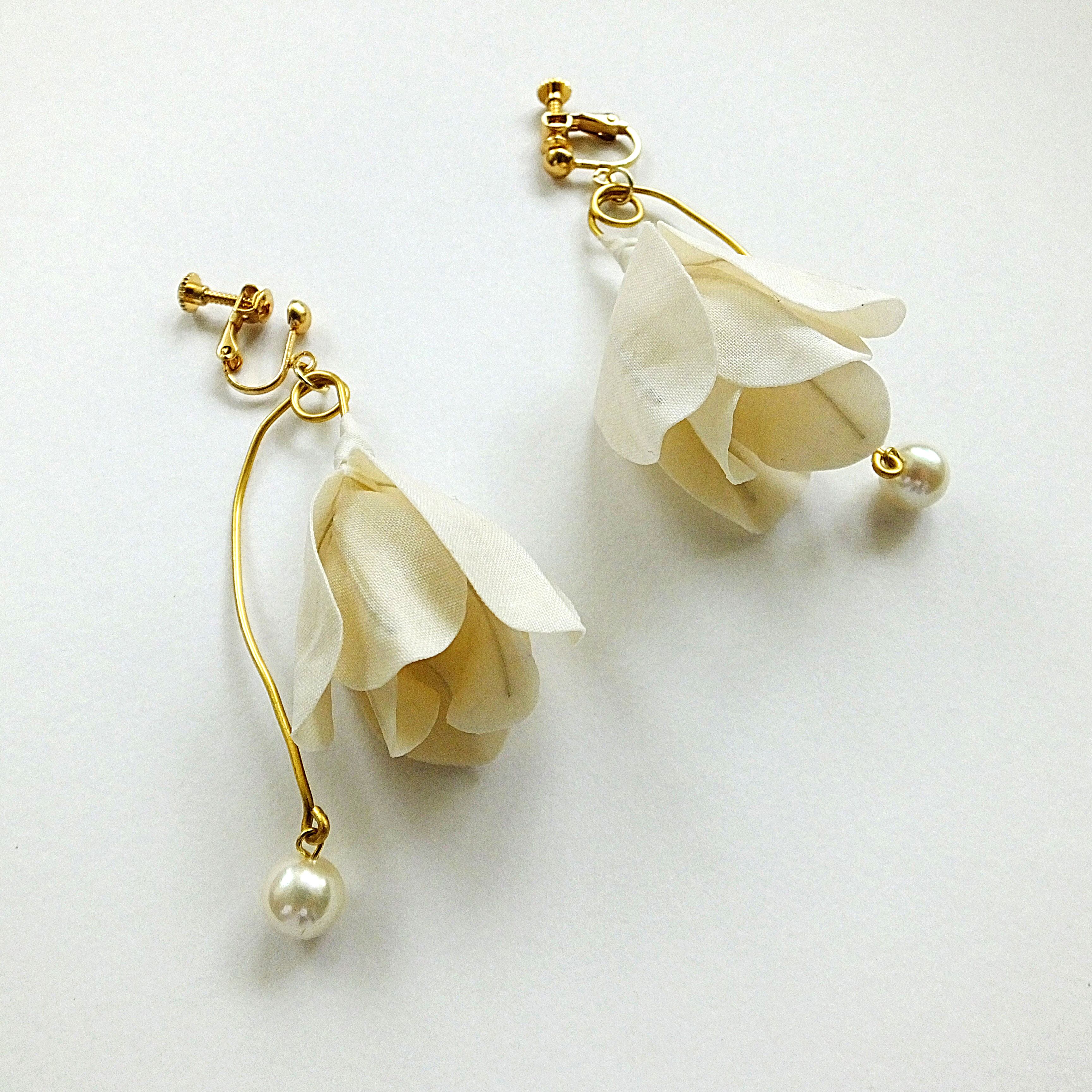 紅茶染めしたコットン生地で作ったチューリップのイヤリングです。