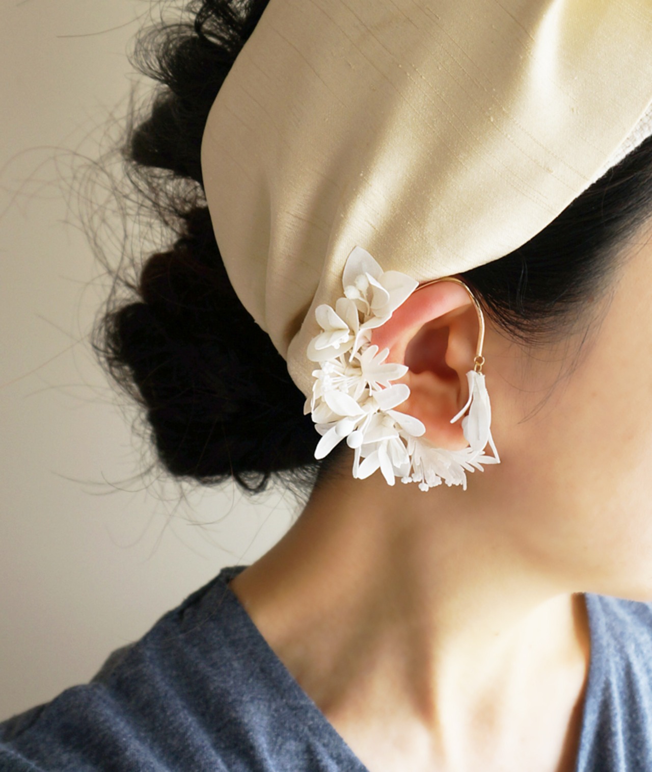 ゴールドやスワロフスキーなど、違った質感のアクセサリーと組み合わせてもかわいいですね。