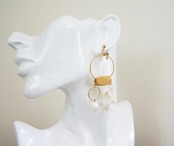 シェルビーズ、ウッドビーズ、メタルチェーンを組み合わせた