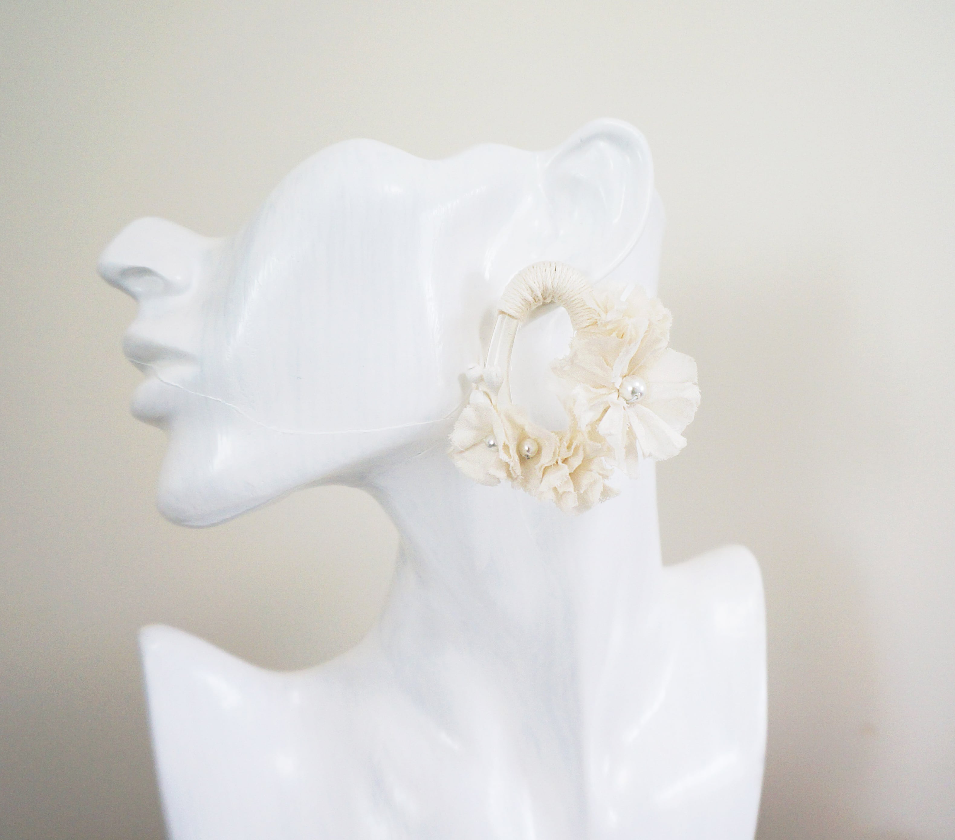 アクリルフープに紅茶染め生地で作った小花を