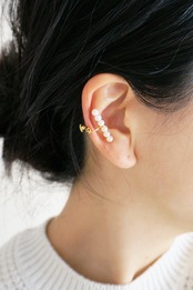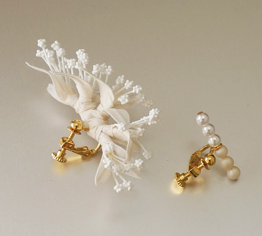 裏にはイヤリングのパーツが付いているので、耳の横をしっかり挟むようにして付けて下さい。