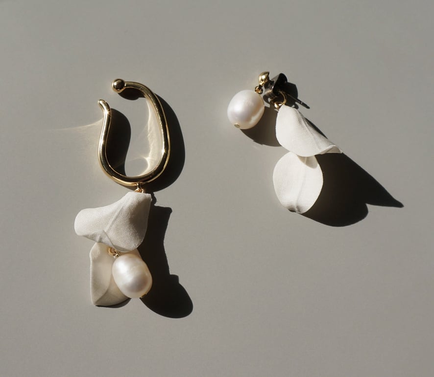 ピアスのキャッチに葉っぱモチーフが付いているので、
