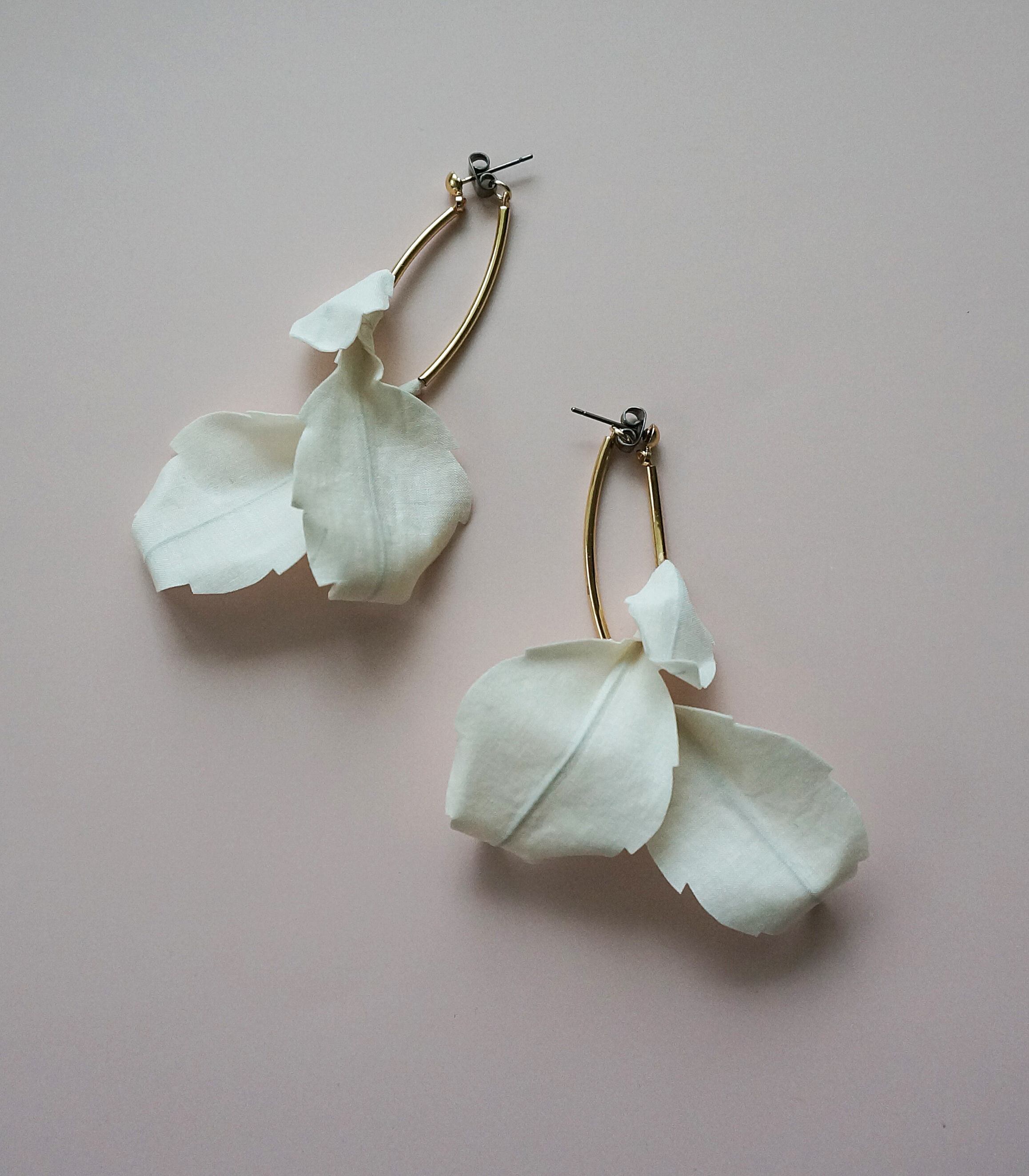 紅茶染めしたコットン生地で作ったリーフモチーフに
