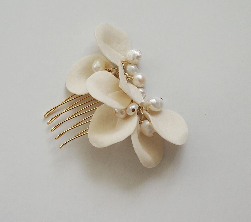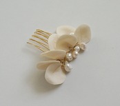 小粒の淡水パールと花びらモチーフをあしらったヘアコーム