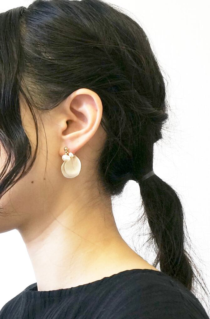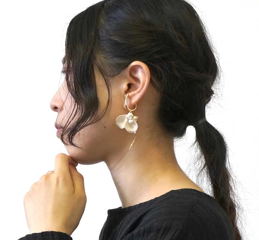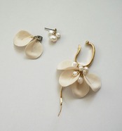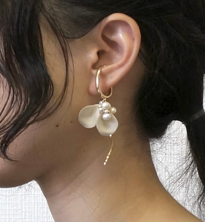 花びらモチーフと小粒の淡水パールをあしらったイヤーカフセット