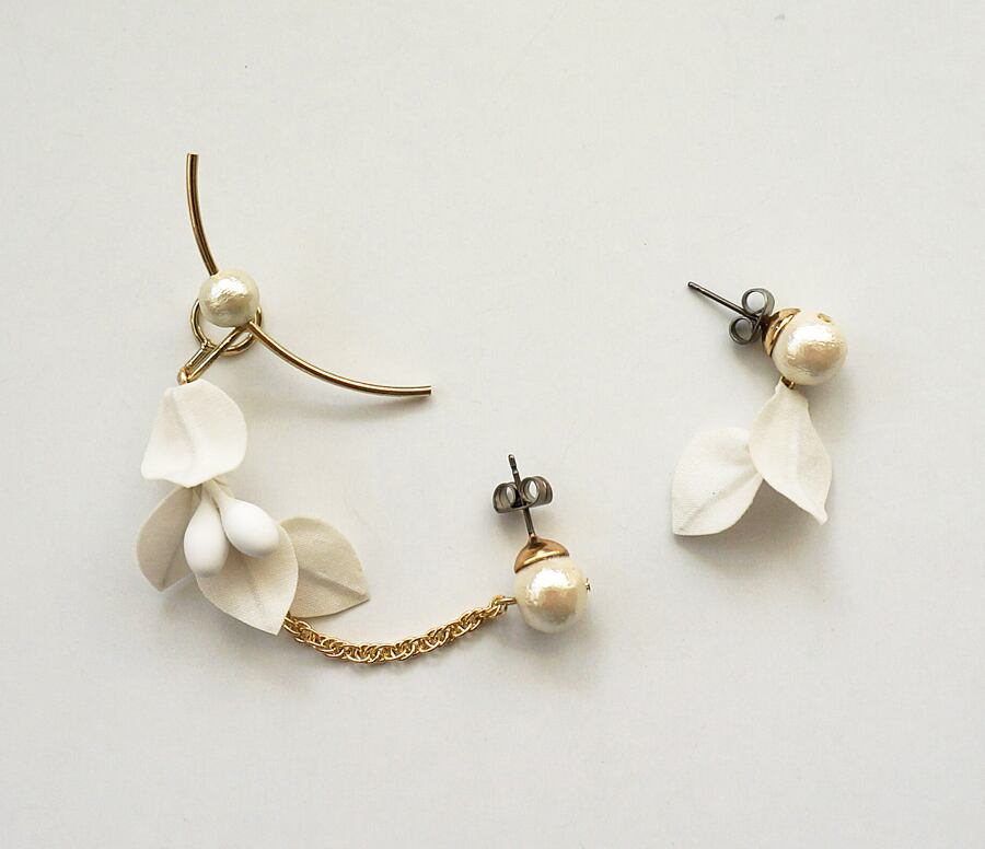 ナチュラルなコットン生地のリーフモチーフとコットンパールも組み合わせて