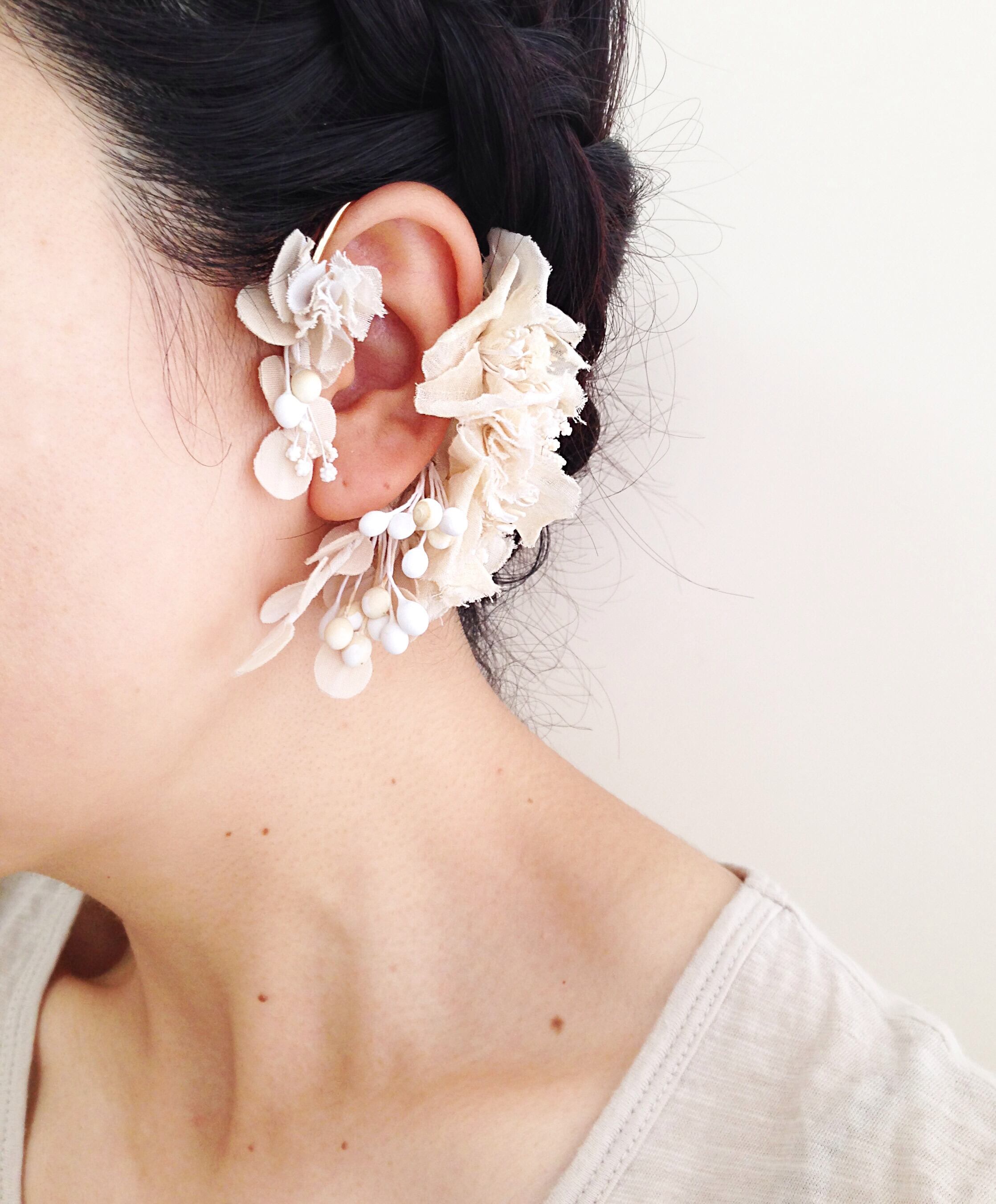紅茶で染めたコットン生地を何種類か組み合わせてイヤーフックを作りました。