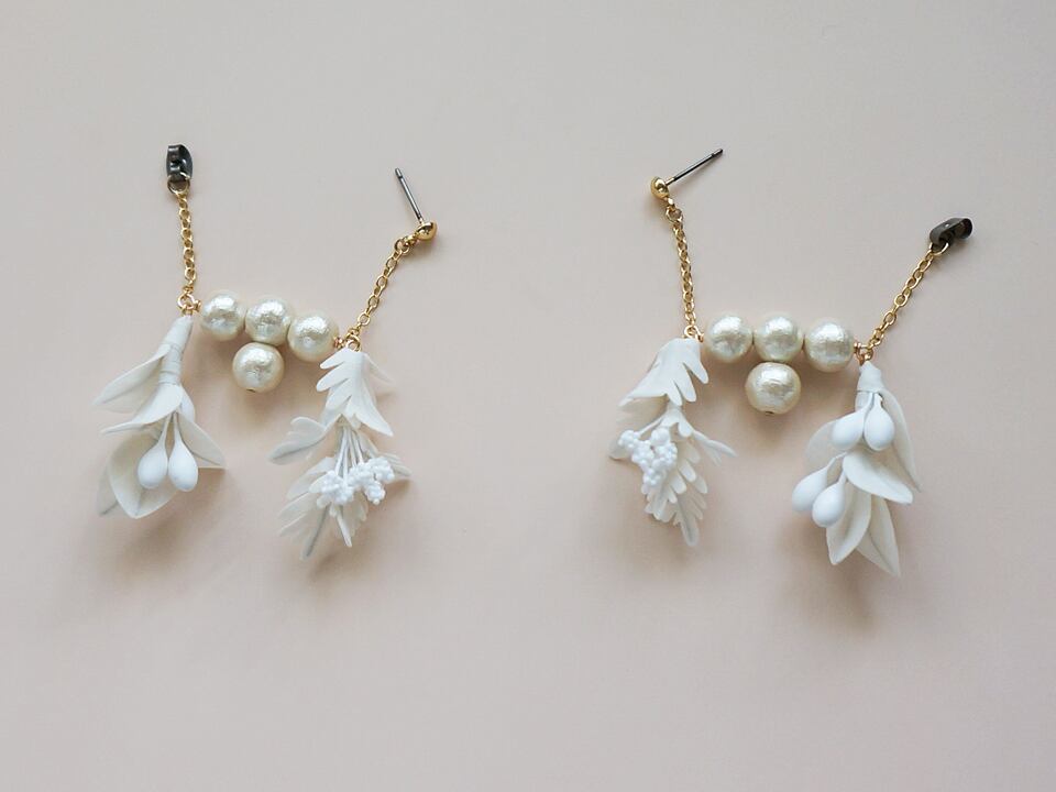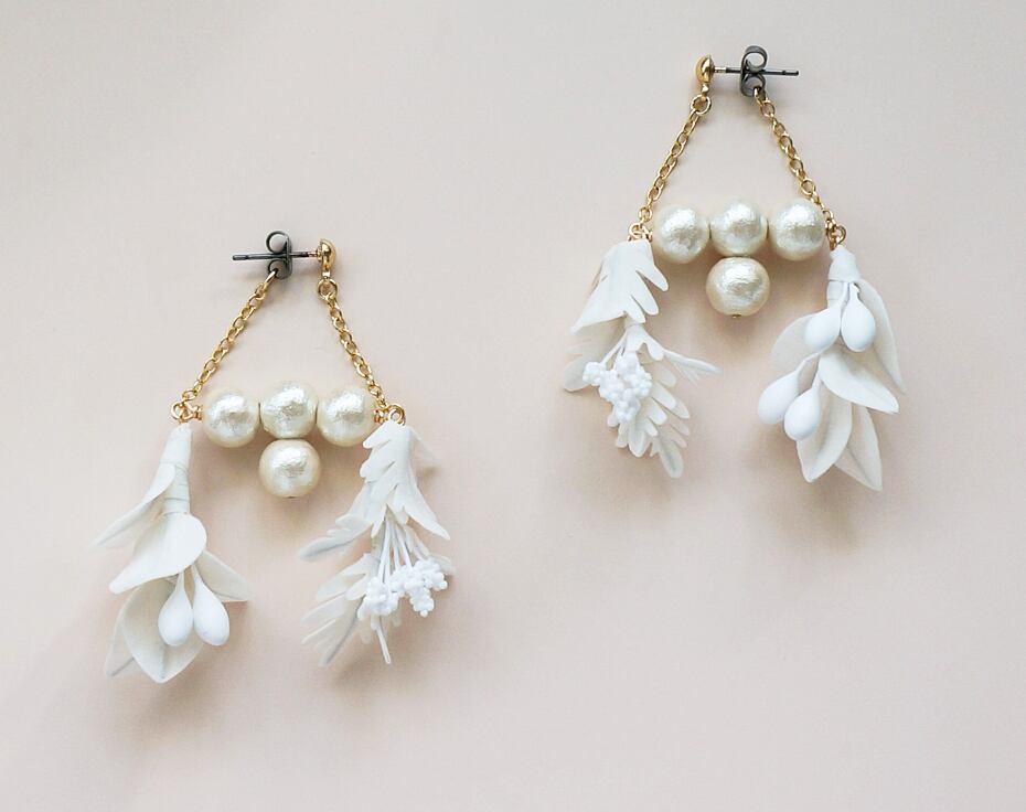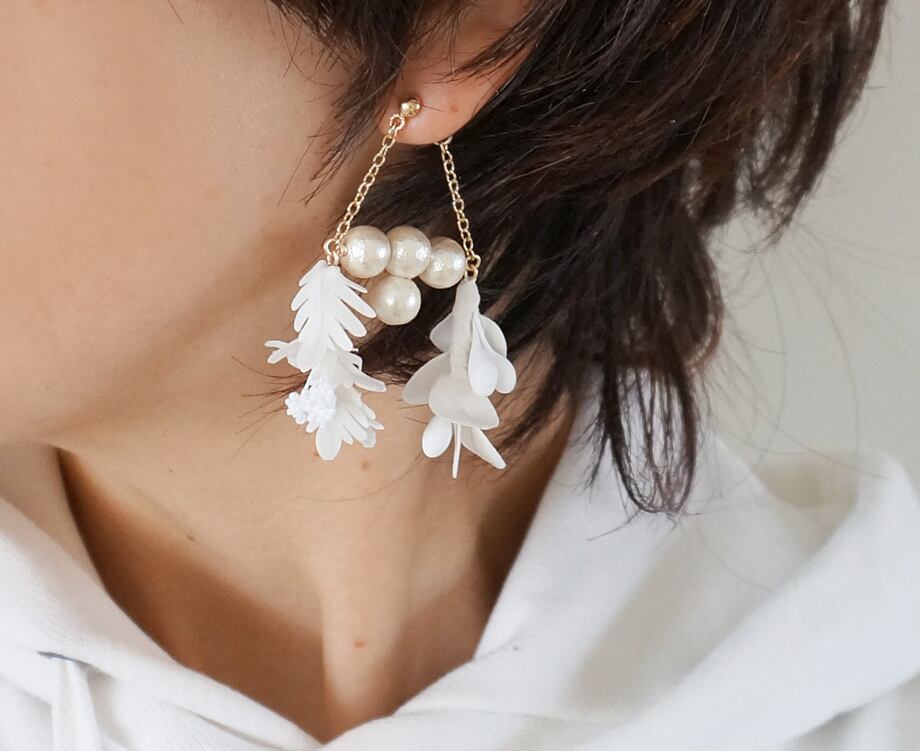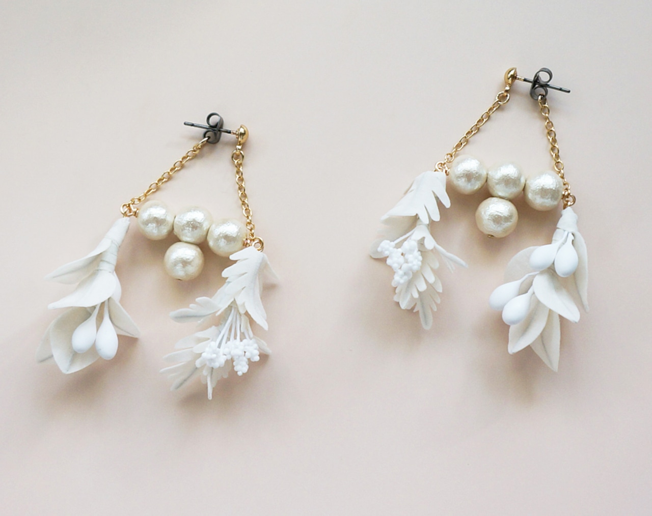 幾何学的に繋いだコットンパールがデザインのアクセント
