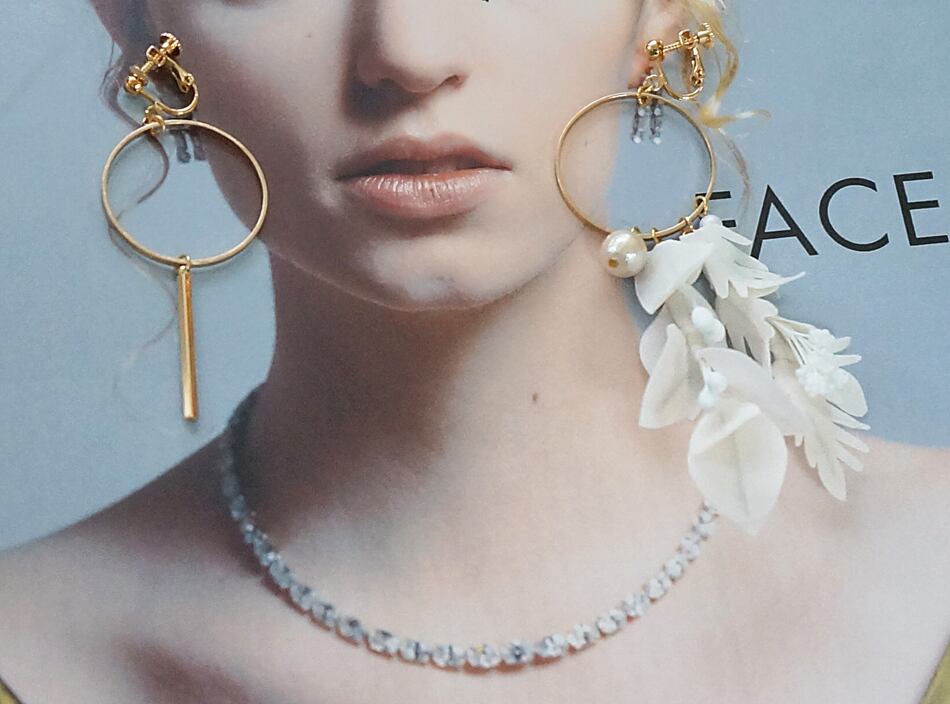 きらっと光るメタリックなフープパーツと組み合わせることで、