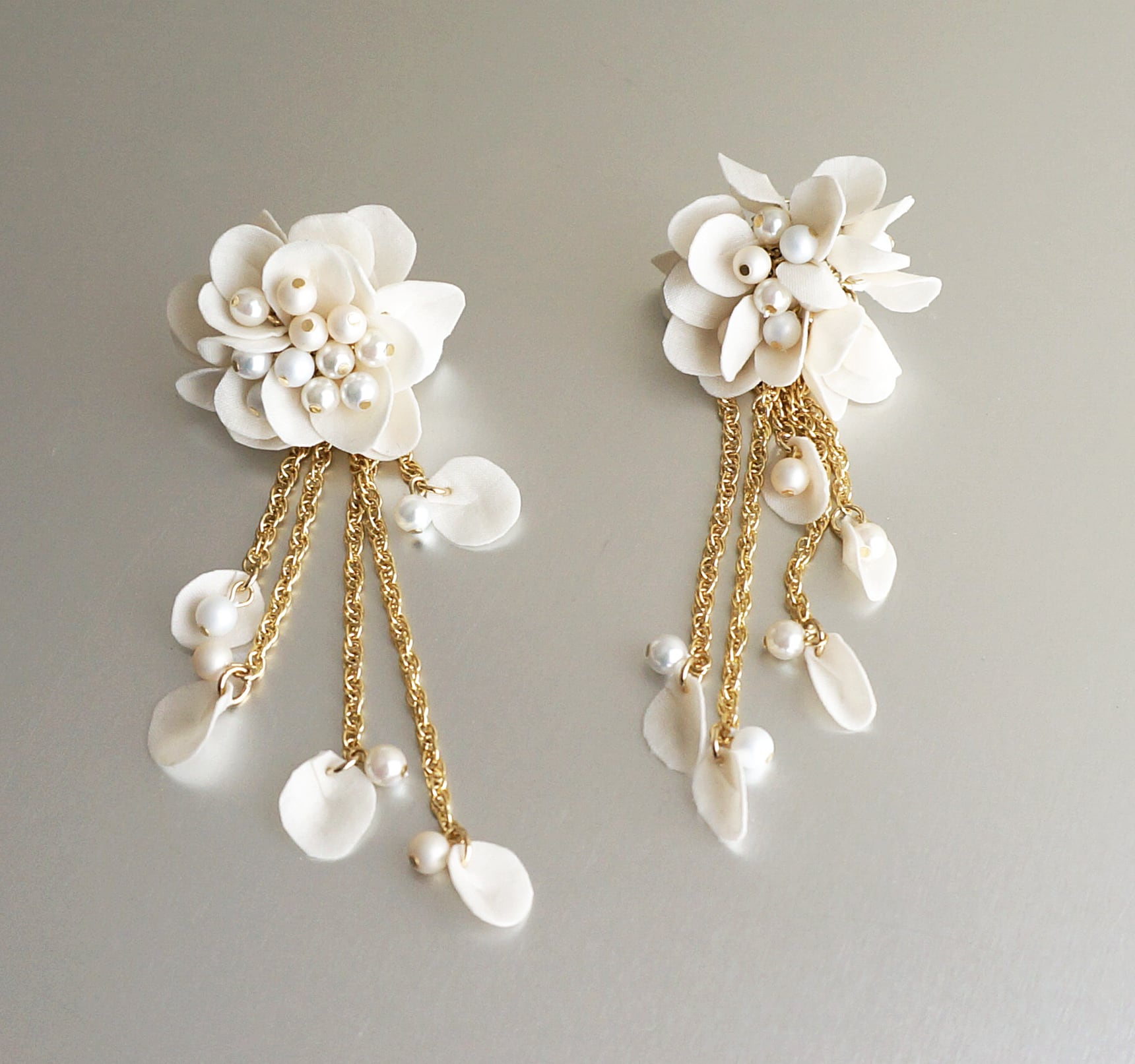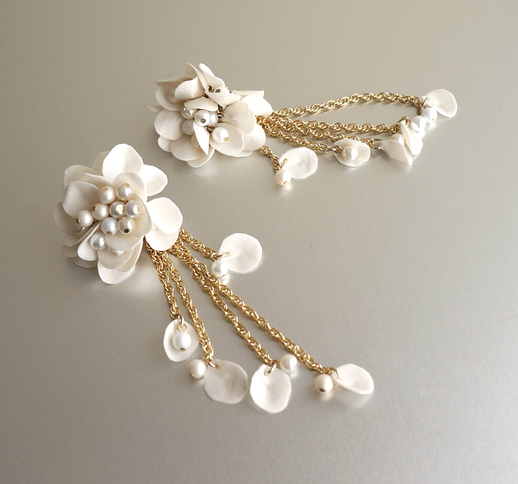 紅茶染めしたアイボリーカラーの花びらを使った