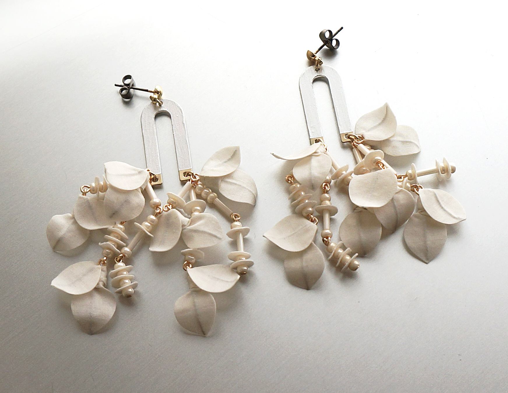 マットなコットンリーフ、艶っとしたビーズ、ハンドペイントのホワイト...