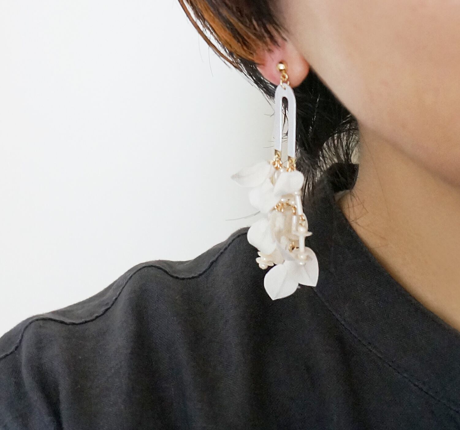 程よいボリューム感と、ナチュラルながらも華やかさがあるピアスです。