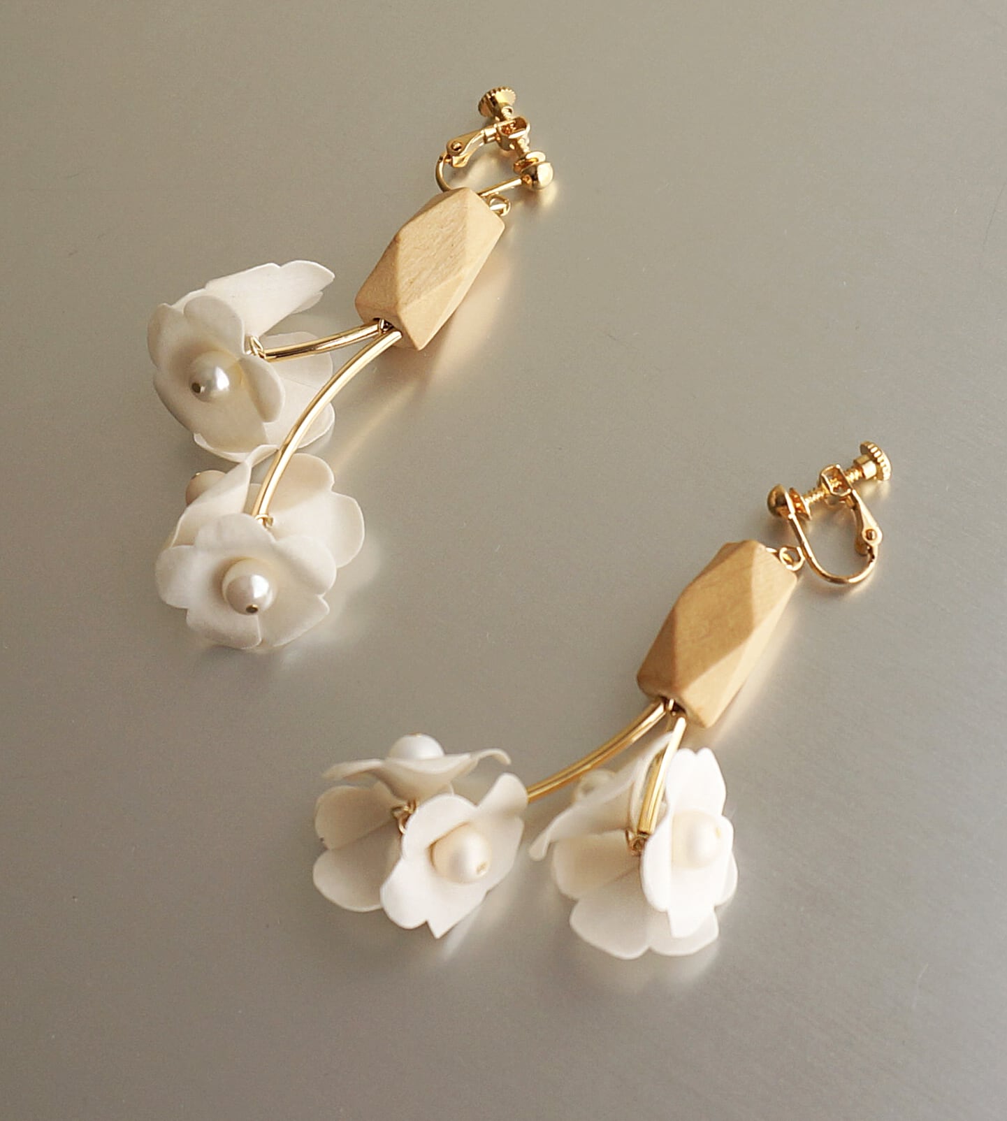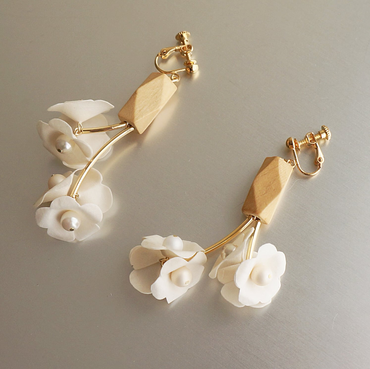 紅茶で染めたコットン生地で作ったお花モチーフを使ったイヤリングです。