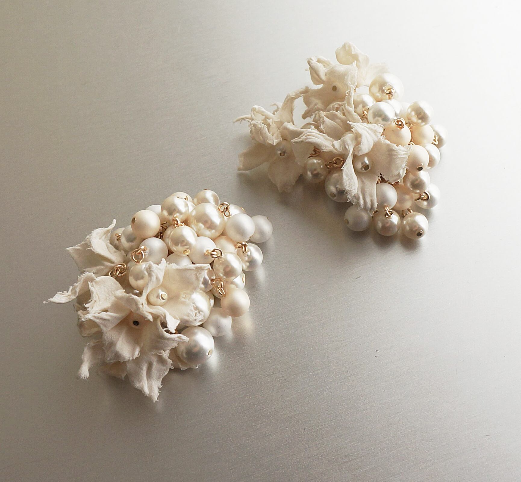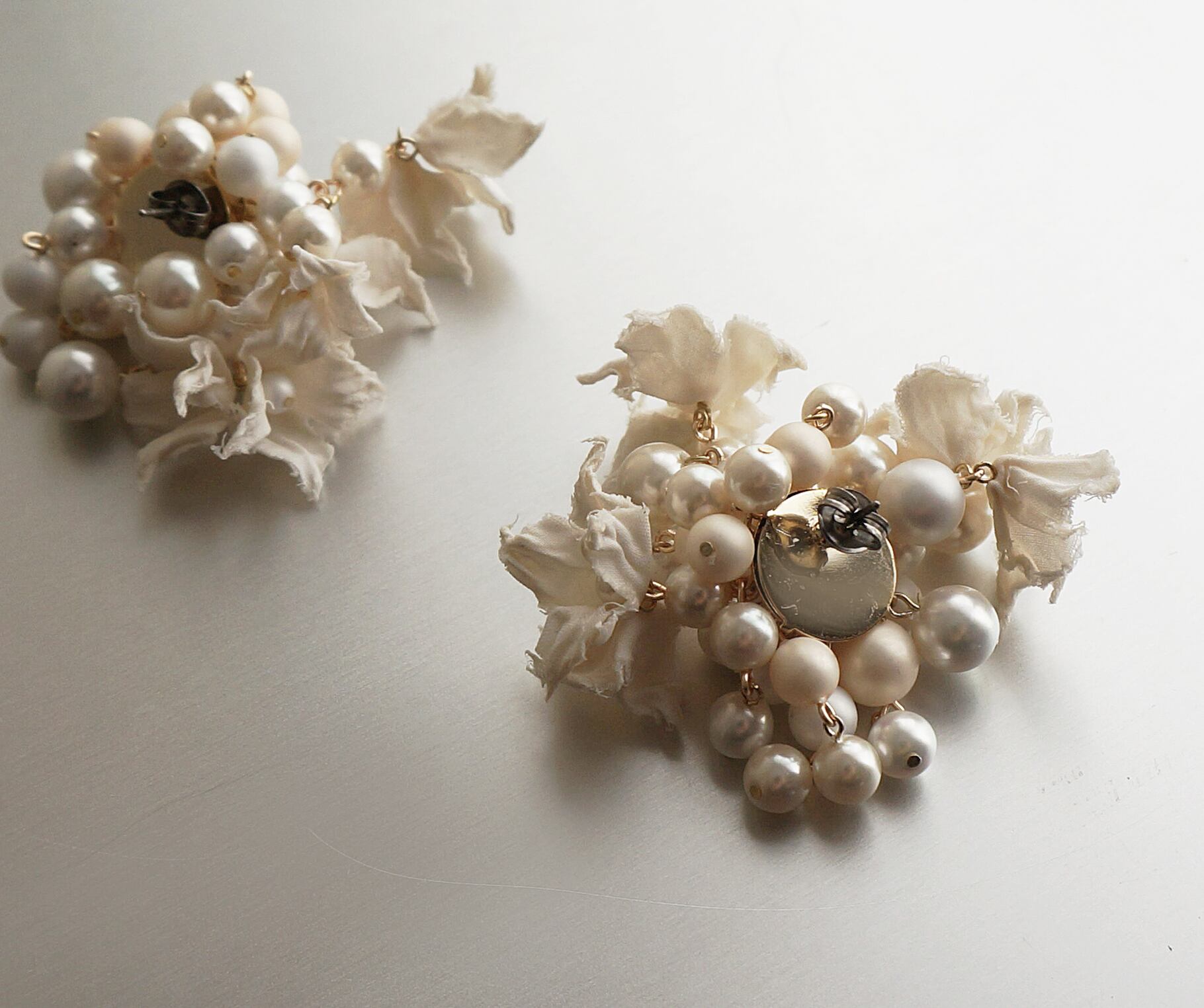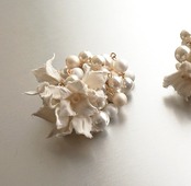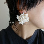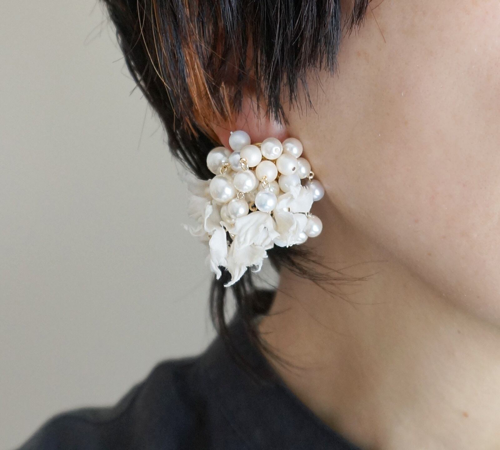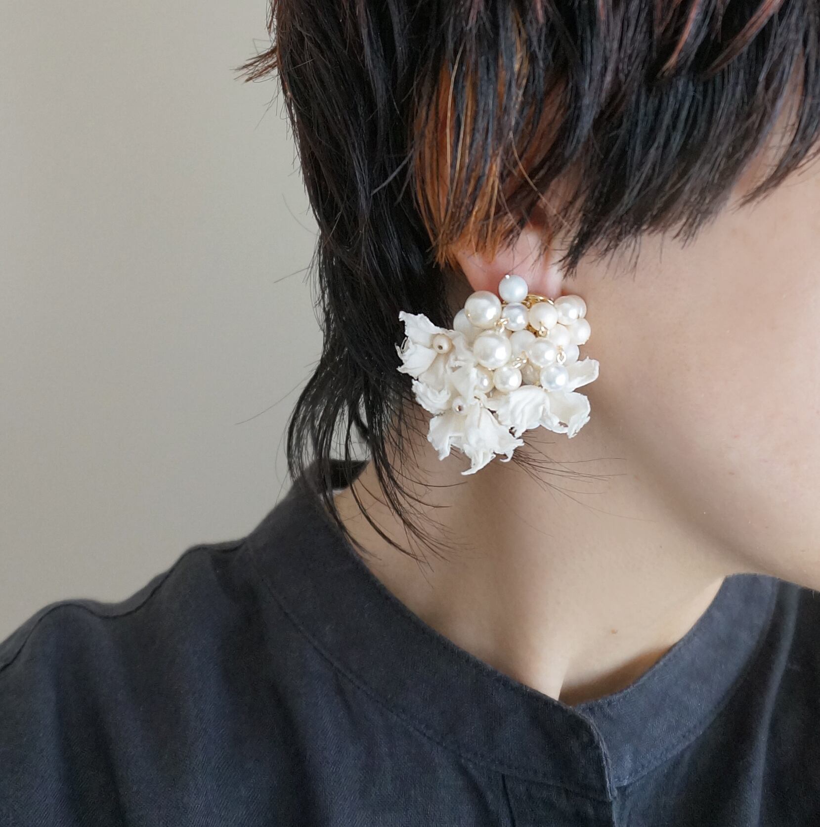 いろいろなカラーのパールビーズをたわわに使ったピアス。