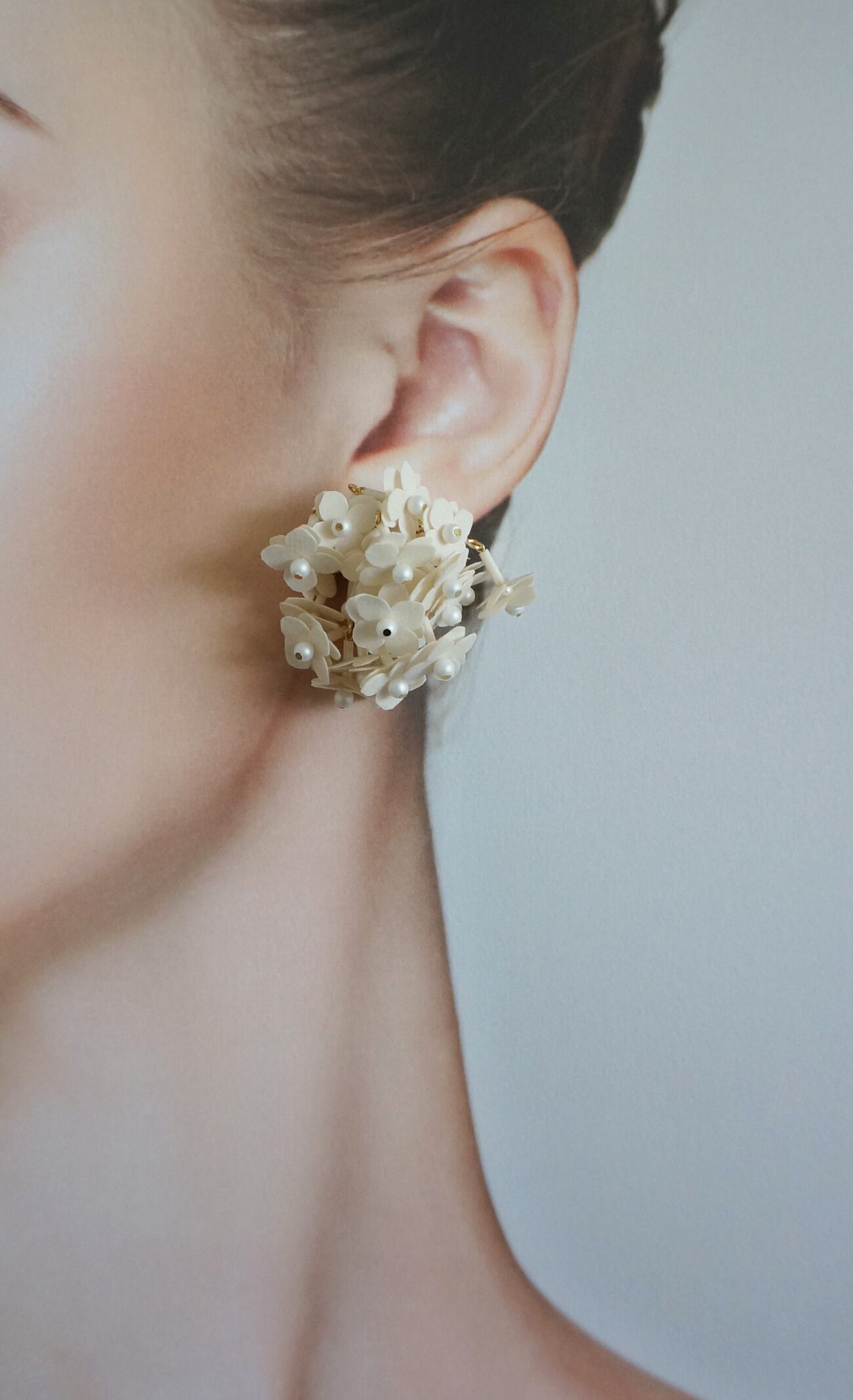 アジサイのようにちいさなお花モチーフを集めたピアス。