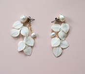 大ぶりなバロックの淡水パールとリーフモチーフを使った2wayピアス。