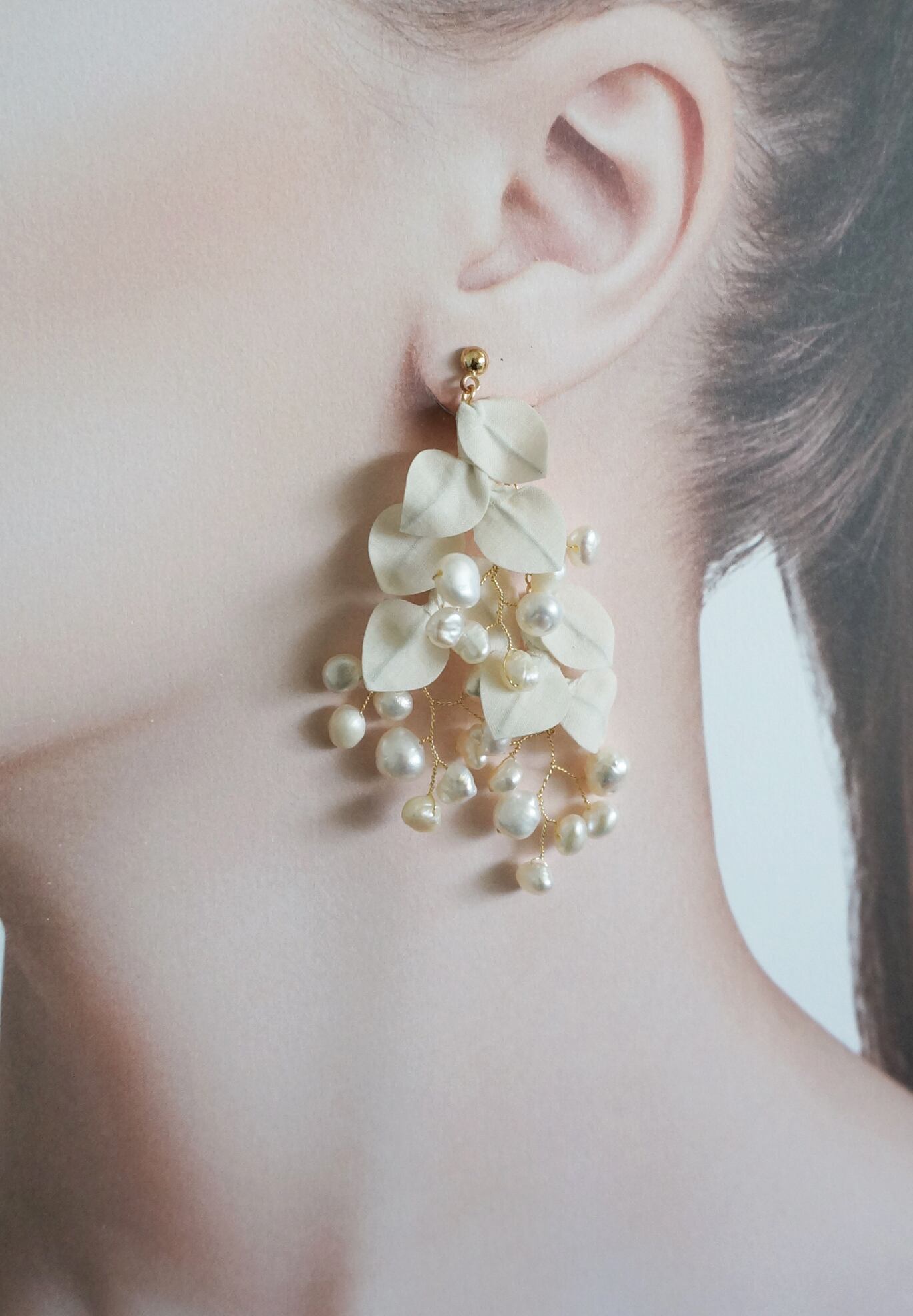 淡水パールならではの光沢感とマットな質感の葉っぱモチーフの組み合わせで