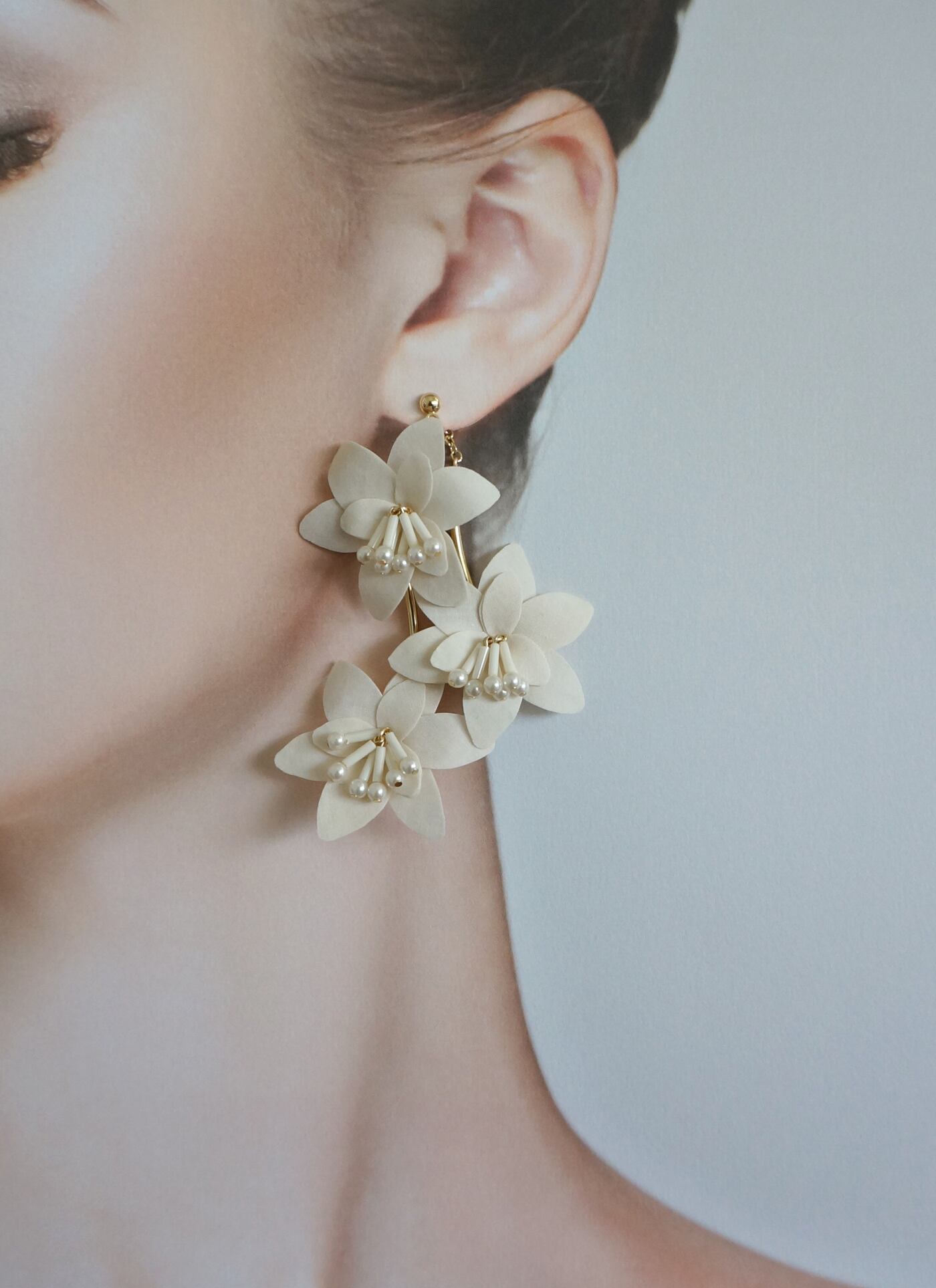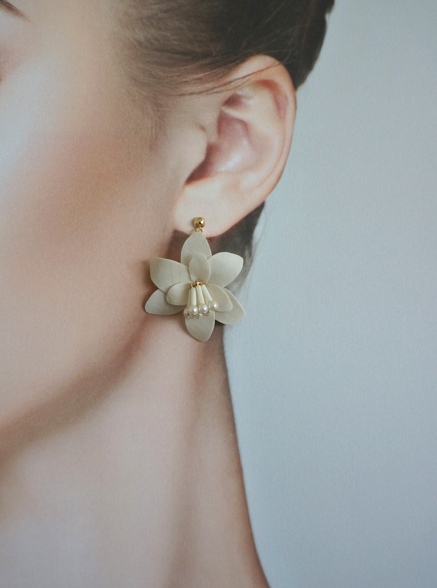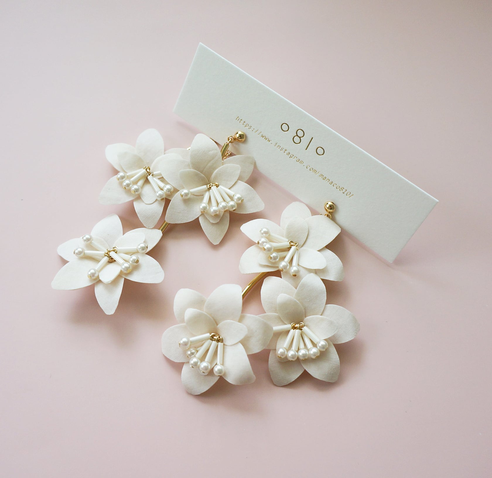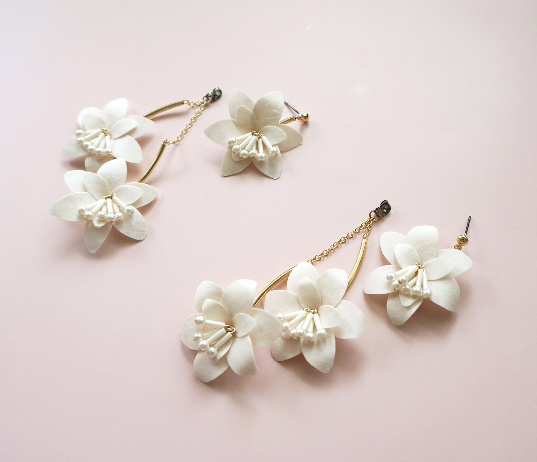 大ぶりなフラワーモチーフを使った2way ピアス。