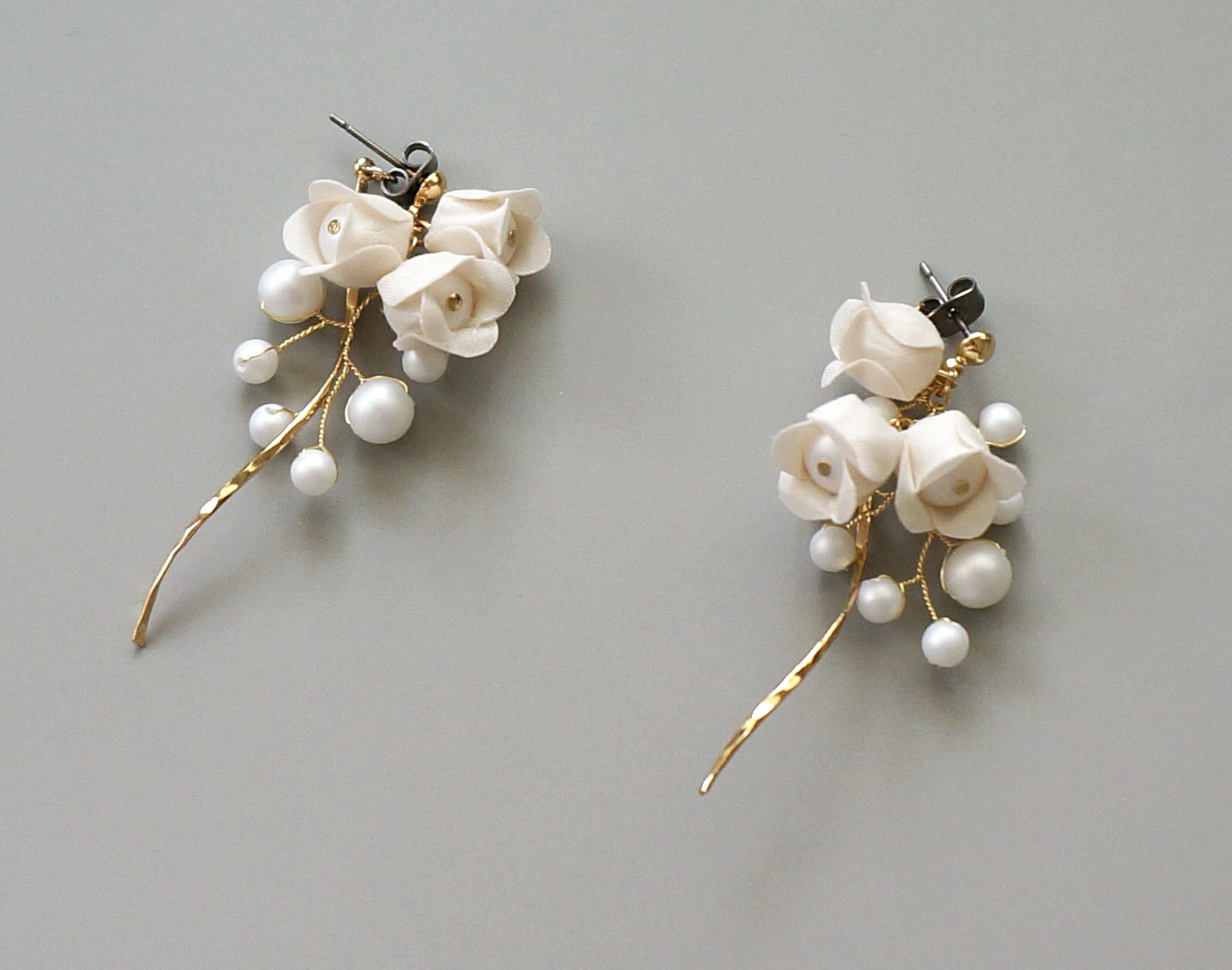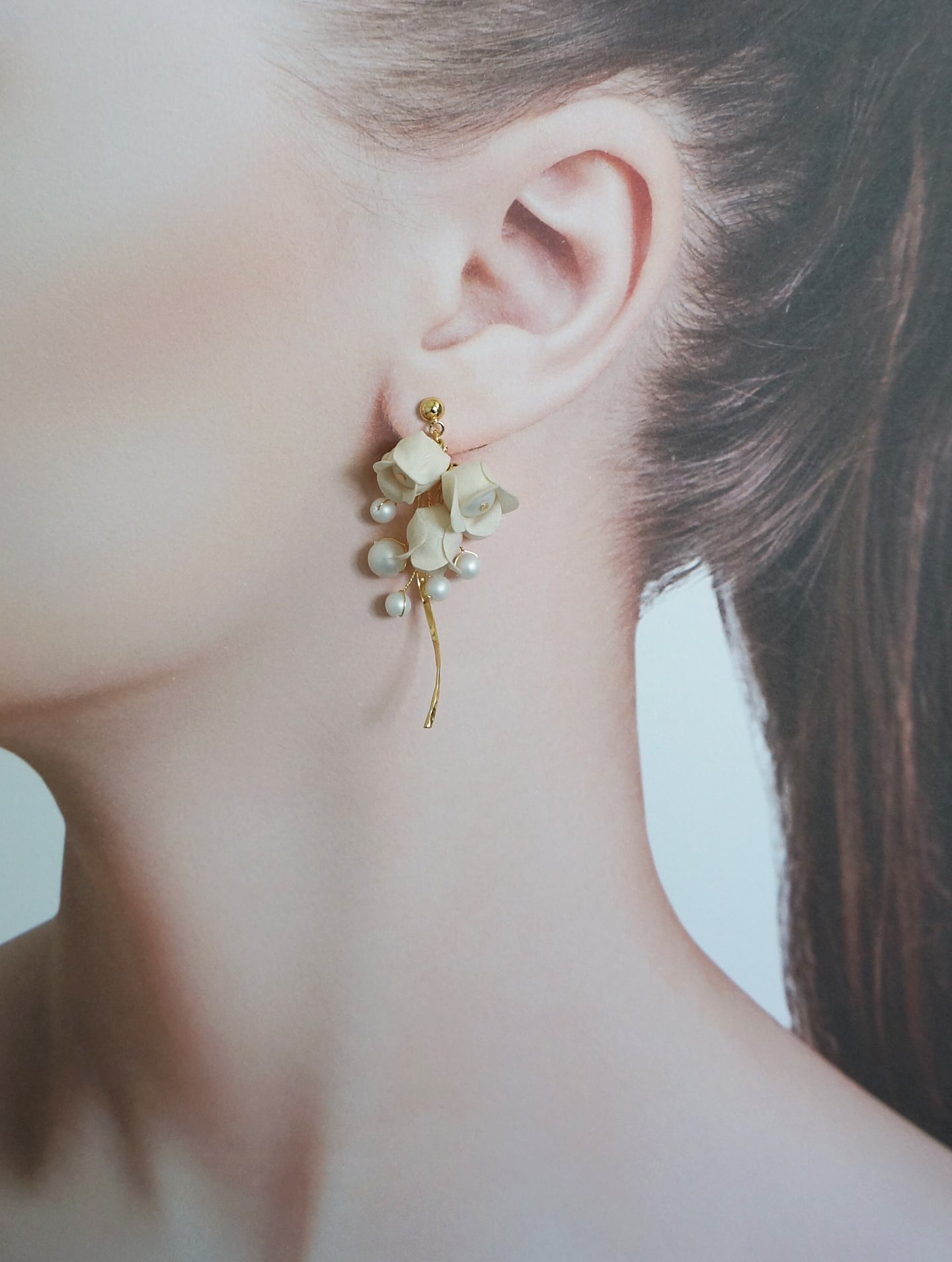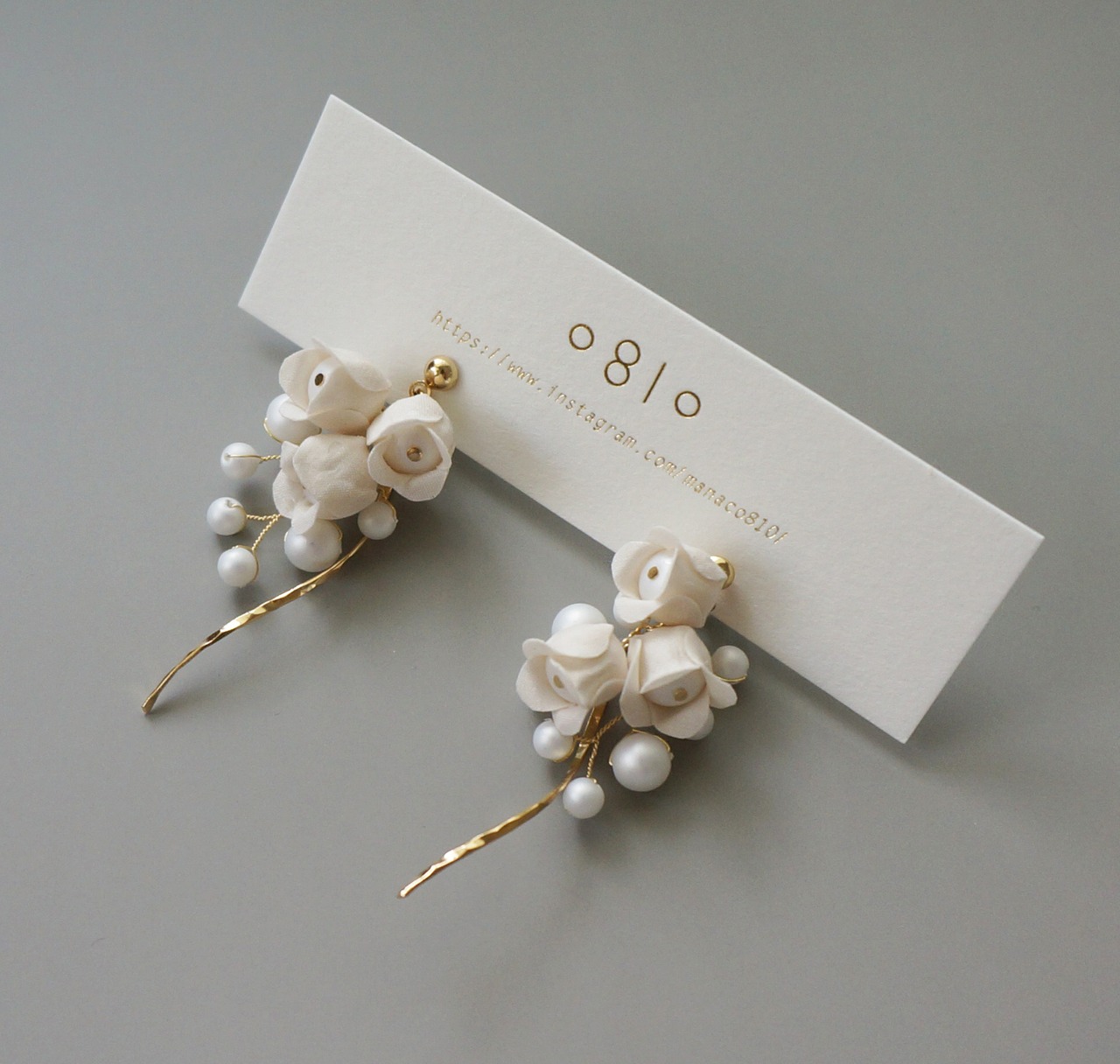 華奢ながら存在感のあるスズランモチーフを、ゴールドパーツで飾りました。