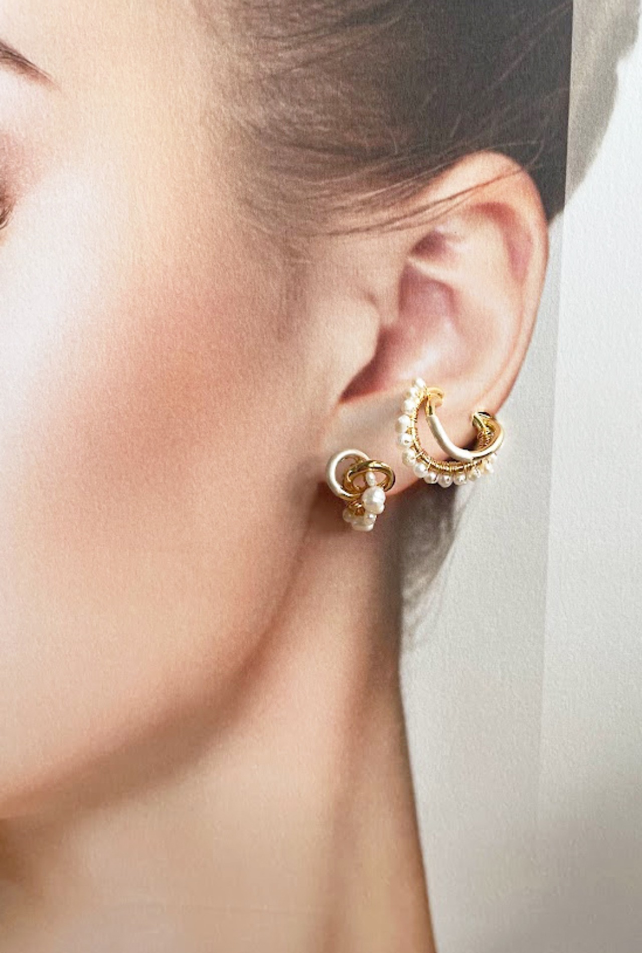 ちいさな淡水パールとパールカラーのペイント加工がデザインのアクセントです。