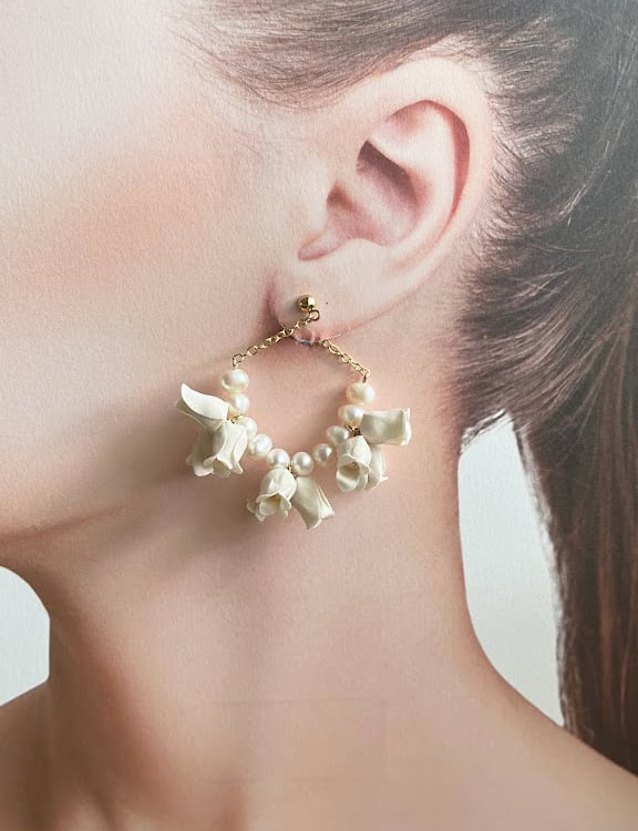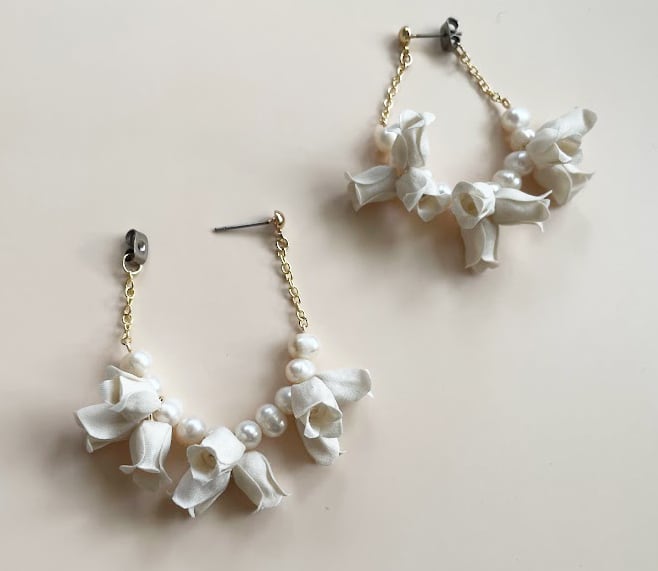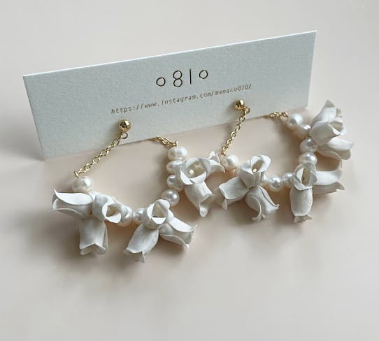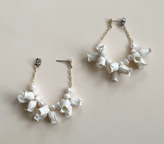 ヒヤシンスのお花モチーフと淡水パールのピアス。